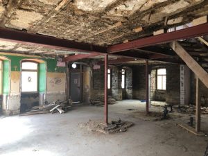 Das Gebäude steht unter erhöhtem Denkmalschutz und stellt eine besondere bauliche Herausforderung dar. Klarlackanstriche auf freigelegtem Mauerwerk und Stahlträger, die durch frühere Nutzer angebracht worden waren, stellen besondere Anforderungen an die Restauration. Darüber hinaus erwies sich das Gebäude, welches die Stadt vor knapp fünf Jahren erworben hat, als statisch sehr anspruchsvoll. Besonderes Augenmerk bei der Restauration liegt auf der Aufarbeitung der Tür und der barocken Fenster.