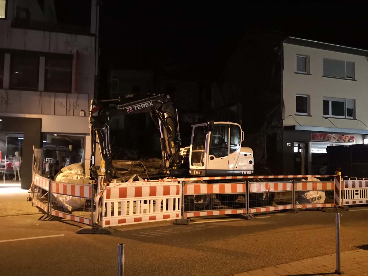 Aufregung am Mittwochabend in der Hauptstraße von Sinsheim. Nach Abbrucharbeiten an einem Haus droht nun das Nachbargebäude einzustürzen. Wie die RNZ am Mittwoch berichtet, wurden bereits vergangene Woche gravierende Mängel an der Statik des angrenzenden Gebäudes festgestellt. Am Nachmittag nun musste die B39/Hauptstraße voll gesperrt werden. Wie Sinsheims Baudezernent Tobias Schutz im Gespräch mit der RNZ mitteilt, bleibe diese Sperrung nun auf nicht absehbare Zeit bestehen.