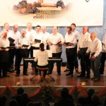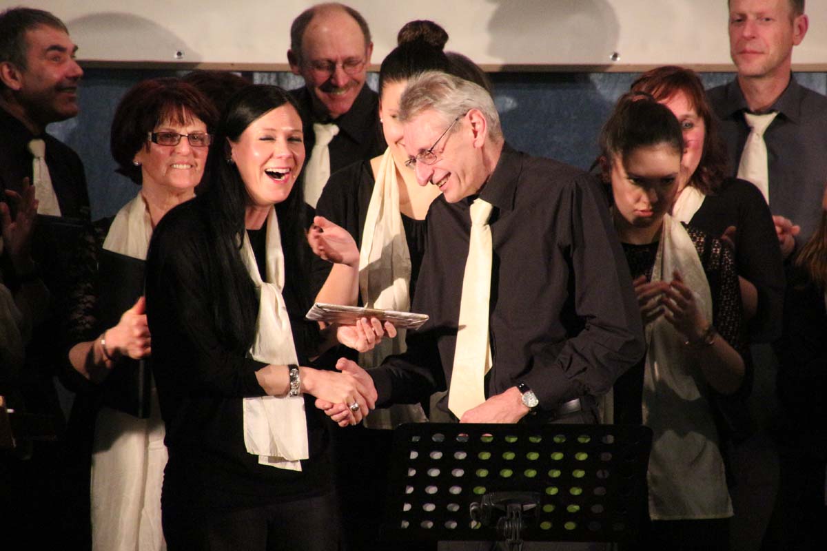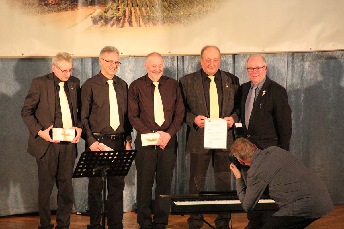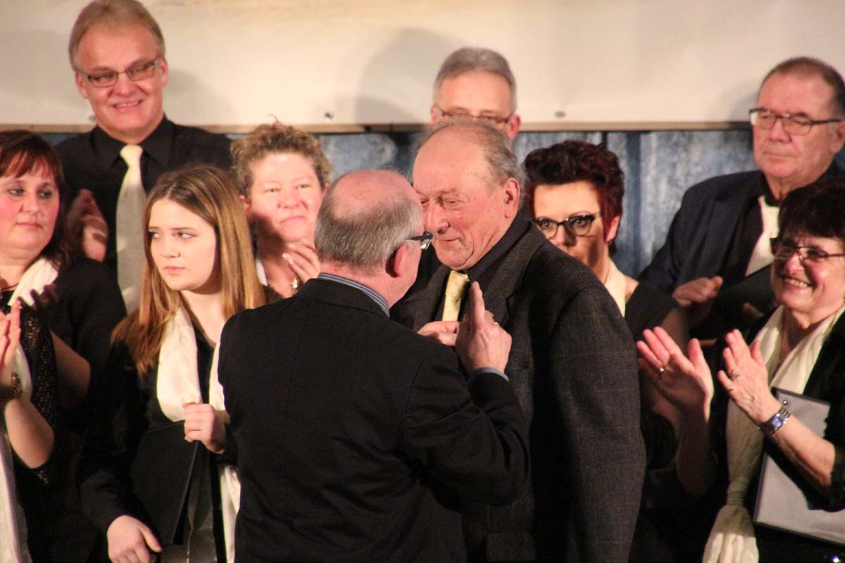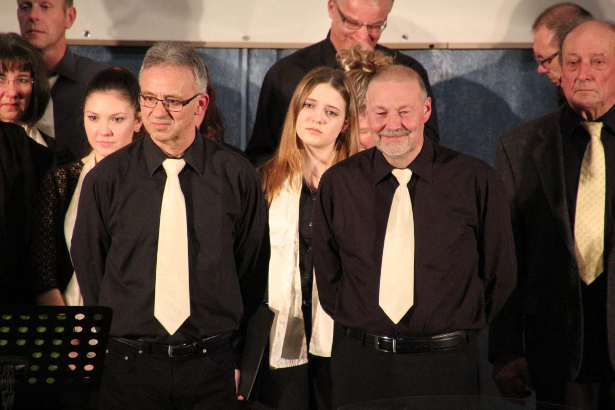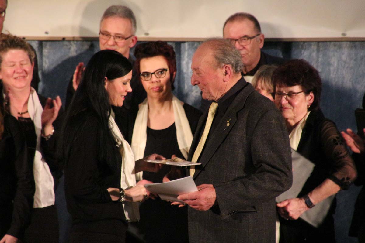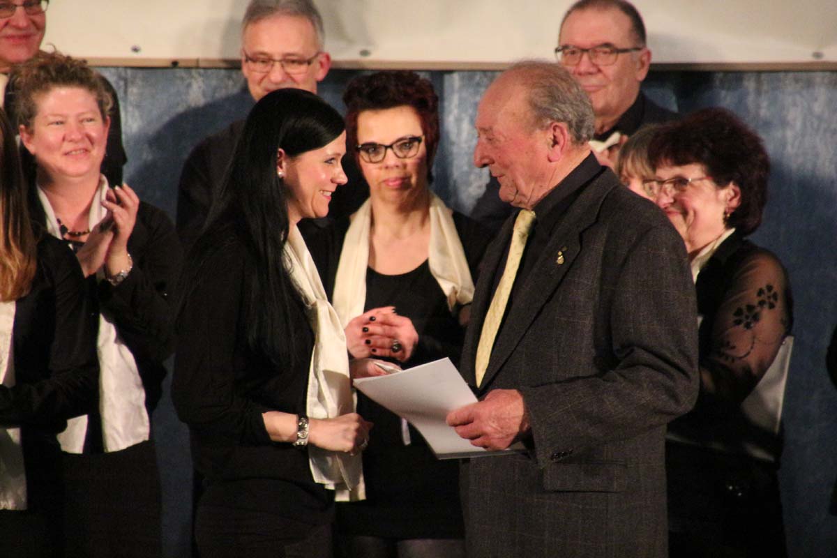 (cr) Mit von der Partie an diesem vergnüglichen Abend der Chormusikfreunde waren der Sängerbund Rohrbach, sowie der MGV Liederkranz Hilsbach. Alle drei Chöre boten einen wunderschönen Einblick in die verschiedenen Arten der Chormusik. Ein wenig modern, ein wenig klassich, nur Frauenstimmen oder Männerstimmen und gemischt, hier war für jeden etwas dabei. In diesem würdigen Rahmen wurde Werner Uhler für 65 Jahre Chorgesang mit der goldenen Ehrennadel geehrt. Eine lange Zeit doch er ist immer noch aktiv und wenn man ihn braucht ist er für seinen Verein immer zur Stelle.
