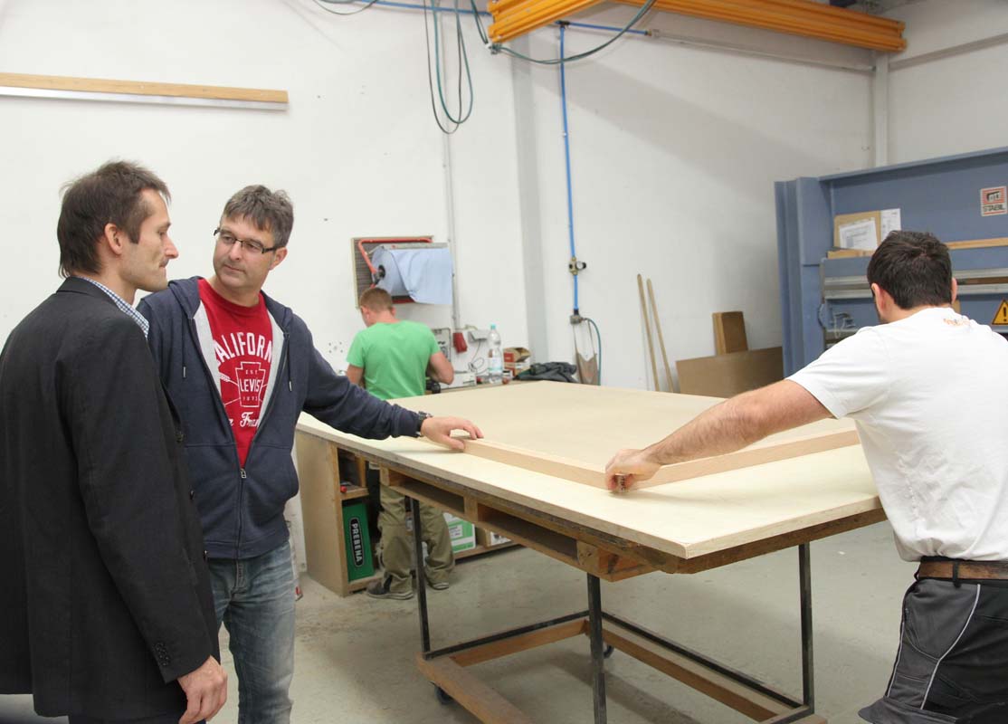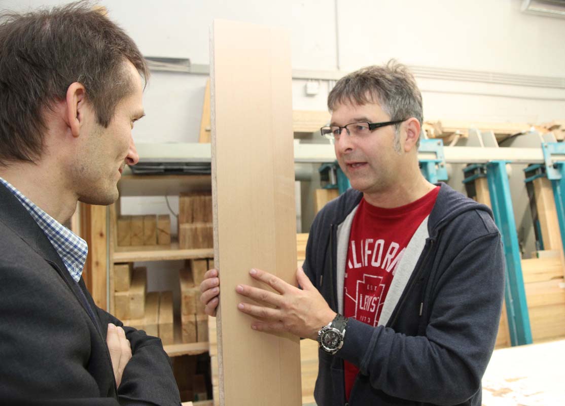 Das Holz für die Türen stammt auch aus der Region, beispielsweise vom Sägewerk Mayer in Neckarbischofsheim, einem traditionellen Familienbetrieb. Und wo gehobelt wird, da fallen bekanntlich Späne. Die nutzt Stefan Dinkel in einer Hackschnitzel-Biomasseheizanlage. Auch 70 Prozent seines Strombedarfs deckt er über eine Photovoltaik-Anlage selbst. „Rundum vorbildlich!“, findet der Abgeordnete.