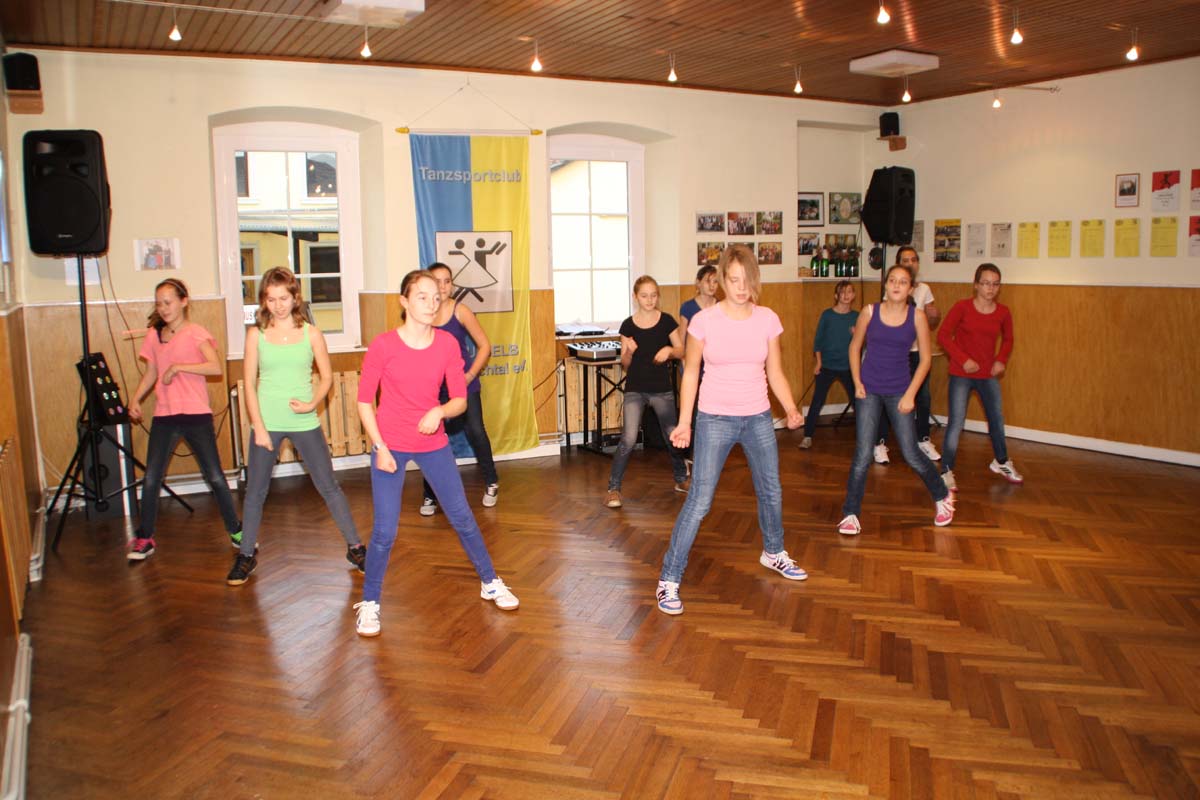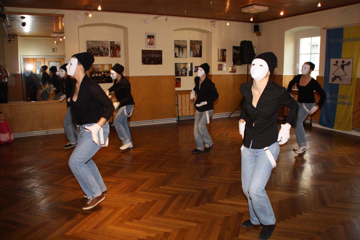 Den Anfang machte die Hip Hop Truppe „In Motion“, die von Saskia Brand trainiert werden, eine tolle Show mit Masken und komplexen Schrittkombinationen. Als Zugabe zeigten sie das man auch ohne Musik tanzen kann. Als nächstes zeigten die kleinen Tanzmäuse von 4-6 Jahren ihren Feentanz. Marion Baumann die neue Trainerin der Kindergruppen hat hier mit viel Fantasie und Kreativität einen tollen Tanz einstudiert. In der nächsten Vorführung zeigten die Gesellschaftspaare, die von Bärbel und Klaus Becker, wie auch von Conny Müller trainiert werden, das man viel Spass am Tanzen haben kann, ohne gleich auf Wettbewerbe gehen zu müssen. Die Dancing Kids von 6-10 Jahren hatten viel Spass mit ihrer neuen Choreografie auf Call me maybe von Carly Rae Jepsen.