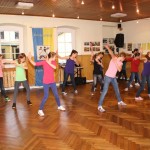 Ein besonderer Höhepunkt war die Tango Argentino Vorführung von Eva Lapsker und Timo Nieto. Professionell führten Sie drei Stilrichtungen des Tango Argentino auf. Ihre Anmut und die Liebe zu diesem Tanz konnte man förmlich spüren. Der Verein ist froh Sie derzeit als Workshop Trainer Freitag abends präsentieren zu können. Die Funny Girls haben gerade mit dem Einstudieren ihrer neuen Show begonnen. Die ersten zwei Teile die sie zeigten konnten sie schon perfekt. Zum guten Schluss zeigte die Zumba Truppe, trainiert von Ines Rauschenberger, ihren absoluten Spass am Tanzen. Fetzige Musik und abwechslungsreiche Schrittkombinationen prägen diese erfolgreiche Tanzform, den man auch ohne Tanzpartner mittanzen kann. Claus Reimann der Sportwart führte als Moderator des Tag der offenen Tür durch das kurzweilige Programm.