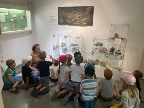 Zur Vorbereitung auf das Leben und die Schule, sollte man die Nase auch mal aus dem Kindergarten strecken. Deshalb machten sich die Schulanfänger des Städtischen Kindergartens Himmelszelt aus Dühren auf den Weg ins Stadtmuseum. Die Stadtbusfahrt war durchaus schon besonders. Im Museum angekommen, nahm Dinah Rotschäfer, die Leiterin des Stadtmuseums, die Kinder im großen Saal in Empfang. Jeder bekam ein Namensschild und schon ging es los. Die Kinder bekamen einen Einblick in unsere Gegenden, als die Mammuts hier waren und wie Kelten und Ritter hier lebten. Im Arbeitszimmer des Herrn Wilhelmi konnte man einen Eindruck davon erhalten, wie ein „Entdecker“ arbeitet und das Handwerk um die Jahrhundertwende wurde gezeigt. Das Lichdi-Lädchen zeigte, dass Einkaufen ohne Verpackungsmüll auch geht. So manche Großeltern haben dort in den 60er Jahren noch eingekauft.