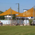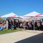 (zg) Nach sieben Jahren intensiver Sanierung sind die Arbeiten im Freibad Sinsheim abgeschlossen. Für rund 5,5 Millionen Euro sind sämtliche Becken, Rutschen, Sprungtürme, Kinderspielbereiche, Liegewiesen und Sanitäranlagen komplett erneuert worden. Krönender Abschluss war die Gestaltung des neuen Eingangsbereiches mit Bistro und zusätzlichen Sanitäreinrichtungen. Dieser Bereich, rund 1.500 m² groß, wurde aus Anlass des bundesweiten Tages der Städtebauförderung besonders stark in den Fokus gerückt, als Oberbürgermeister Jörg Albrecht und zahlreiche Ehrengäste den Freibadvorplatz offiziell eröffneten. „Platz da!“ haben die Planer im städtischen Rathaus ihr Projekt genannt, das in dieser Art und Optik wohl weit und breit einzigartig ist. Der neue Platz übernimmt gleich mehrere Funktionen. Er vereint einerseits den Eingangs- und Aufenthaltsbereich für Besucher des Freibades. Er bietet Fahrradstellplätze und die Zufahrt zum benachbarten Wohnmobilstellplatz. Eine einheitliche Pflasterstruktur fällt positiv auf und große und kleine Sitzelemente laden zum Verweilen ein. Das neue Bistro wirkt einladend und nicht nur Badegäste können sich dort verköstigen, sondern auch eine Bewirtung nach außen findet statt. Wohnmobilisten wird es besonders freuen: die sanitären Anlagen können unabhängig von den Öffnungszeiten des Bades genutzt werden.