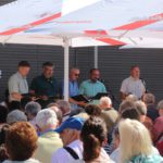 Der Platzeinweihung ist bei strahlendem Sonnenschein ein ökumenischer Gottesdienst mit der Segnung des Bades vorausgegangen. Die evangelische und katholische Kirchengemeinde und die Mennoniten gestalteten den Gottesdienst mit Liedern und Gebeten unter dem Motto „Wasser schenkt Leben!“. Jörg Albrecht dankte für die Unterstützung, die von Seiten der Bundes- und Landespolitik erfolgte und dem Gemeinderat für das kooperative Miteinander. Nicht unerwähnt ließ Albrecht in seinem Grußwort die Initiative seines Vorgängers im Amt für die Sanierung des Freibades.