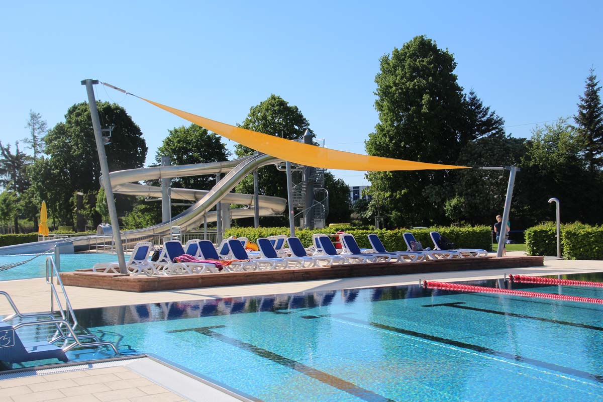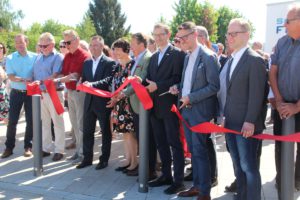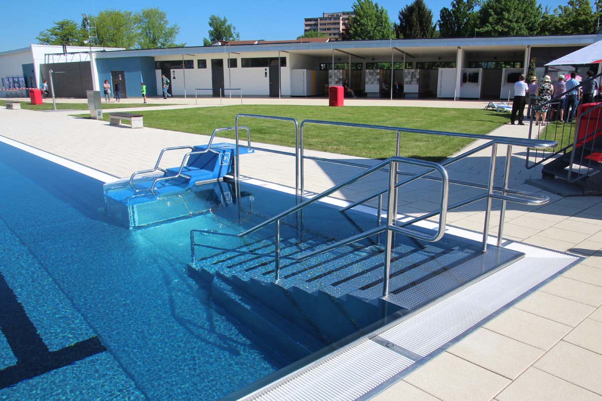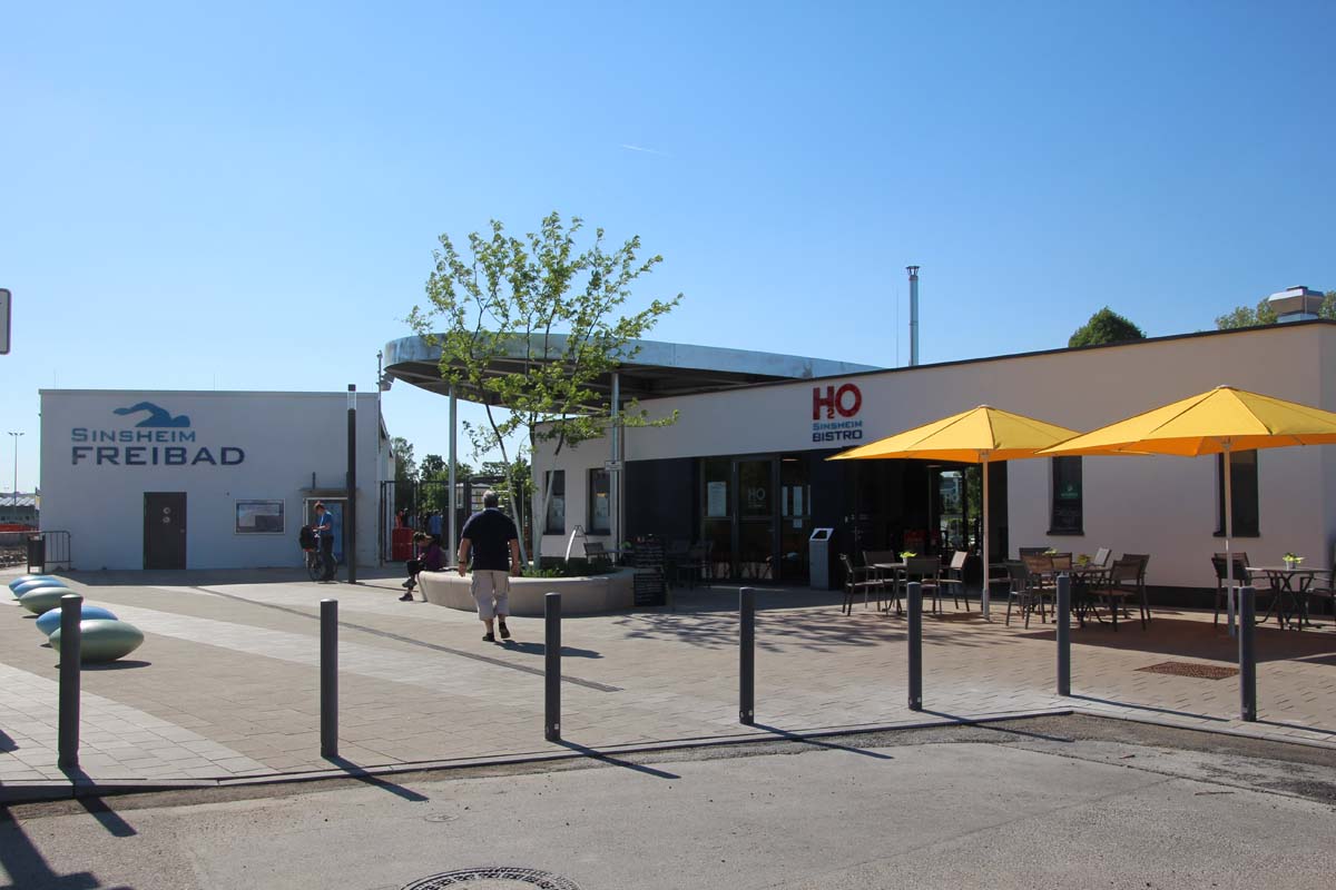 (zg) Nach sieben Jahren intensiver Sanierung sind die Arbeiten im Freibad Sinsheim abgeschlossen. Für rund 5,5 Millionen Euro sind sämtliche Becken, Rutschen, Sprungtürme, Kinderspielbereiche, Liegewiesen und Sanitäranlagen komplett erneuert worden. Krönender Abschluss war die Gestaltung des neuen Eingangsbereiches mit Bistro und zusätzlichen Sanitäreinrichtungen. Dieser Bereich, rund 1.500 m² groß, wurde aus Anlass des bundesweiten Tages der Städtebauförderung besonders stark in den Fokus gerückt, als Oberbürgermeister Jörg Albrecht und zahlreiche Ehrengäste den Freibadvorplatz offiziell eröffneten. „Platz da!“ haben die Planer im städtischen Rathaus ihr Projekt genannt, das in dieser Art und Optik wohl weit und breit einzigartig ist. Der neue Platz übernimmt gleich mehrere Funktionen. Er vereint einerseits den Eingangs- und Aufenthaltsbereich für Besucher des Freibades. Er bietet Fahrradstellplätze und die Zufahrt zum benachbarten Wohnmobilstellplatz. Eine einheitliche Pflasterstruktur fällt positiv auf und große und kleine Sitzelemente laden zum Verweilen ein. Das neue Bistro wirkt einladend und nicht nur Badegäste können sich dort verköstigen, sondern auch eine Bewirtung nach außen findet statt. Wohnmobilisten wird es besonders freuen: die sanitären Anlagen können unabhängig von den Öffnungszeiten des Bades genutzt werden.