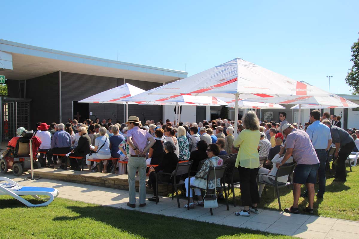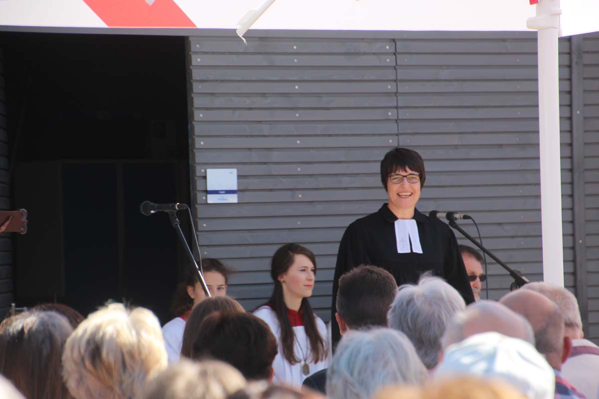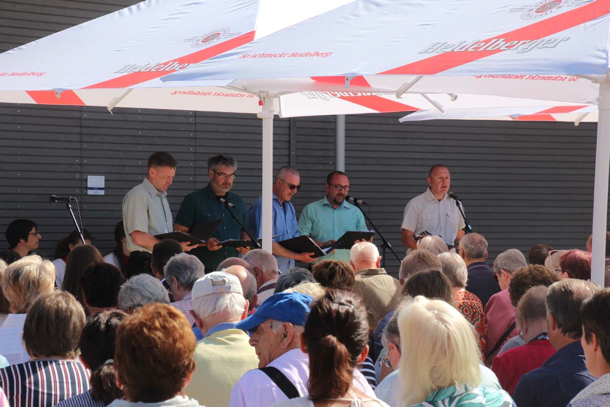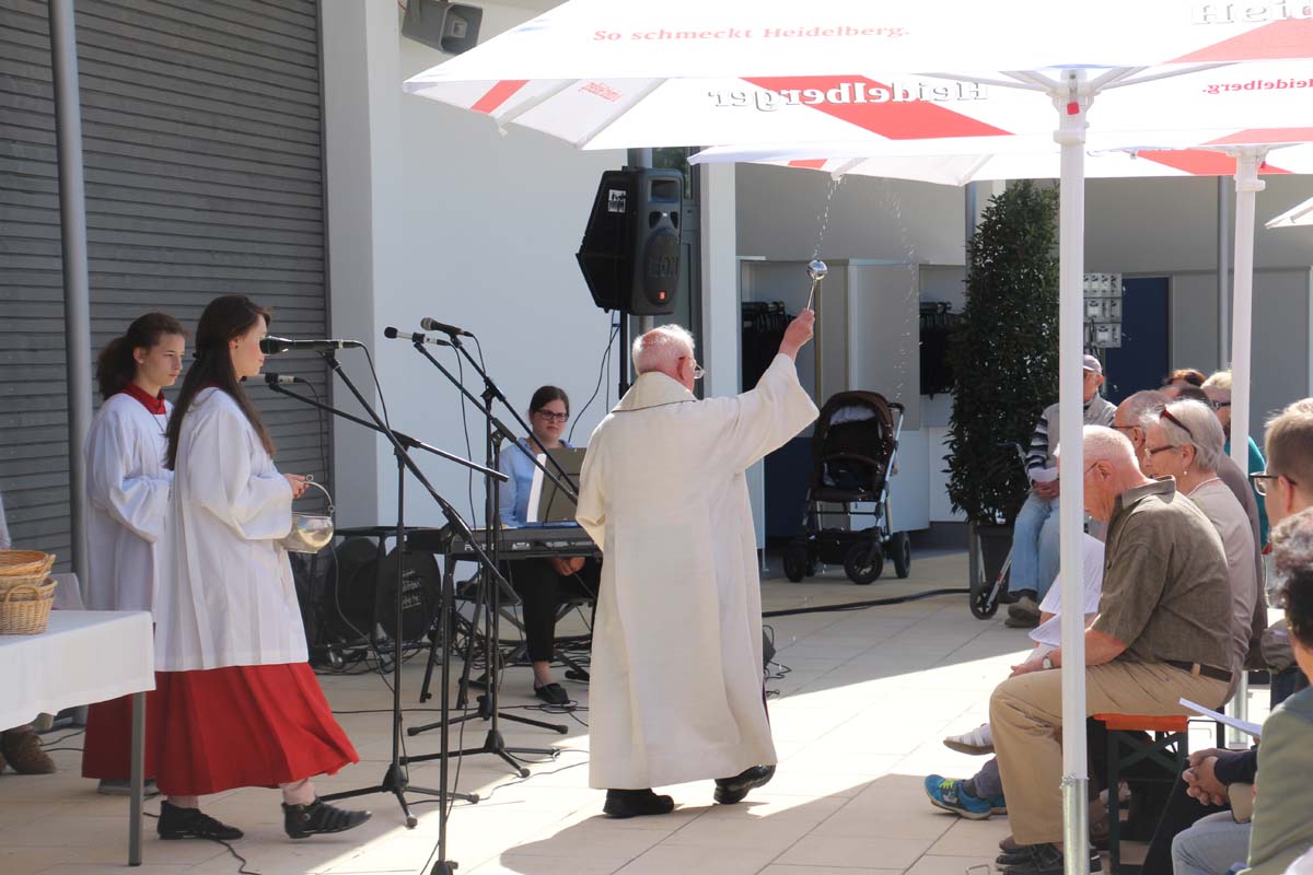 Der Platzeinweihung ist bei strahlendem Sonnenschein ein ökumenischer Gottesdienst mit der Segnung des Bades vorausgegangen. Die evangelische und katholische Kirchengemeinde und die Mennoniten gestalteten den Gottesdienst mit Liedern und Gebeten unter dem Motto „Wasser schenkt Leben!“. Jörg Albrecht dankte für die Unterstützung, die von Seiten der Bundes- und Landespolitik erfolgte und dem Gemeinderat für das kooperative Miteinander. Nicht unerwähnt ließ Albrecht in seinem Grußwort die Initiative seines Vorgängers im Amt für die Sanierung des Freibades.