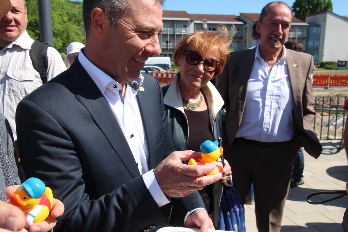Dank finanzieller Mittel aus der Städtebauförderung von Bund und Land konnte dieser Platz konzipiert und gebaut werden. Passend zum Tag der Städtebauförderung bekam die Öffentlichkeit Gelegenheit, den Platz in Augenschein zu nehmen. Er liegt im städtebaulichen Erneuerungsgebiet „Wiesental/Innenstadt-Ost“, zu der auch die Stadthalle gehört, die sich laut OB Albrecht nach ihrer Sanierung ebenso schmuck präsentieren wird, wie der neue Platz vor dem Freibad.