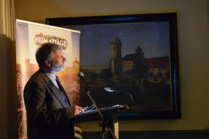 (zg) Am vergangenen Freitag, den 17. Januar 2020, um 19:30 Uhr war es endlich soweit: Das Stadtmuseum Sinsheim startete gleich mit zwei Programmhighlights in die Heimattage Baden-Württemberg 2020. Ein voller Erfolg. Bereits eine halbe Stunde vor Eröffnung strömten die Menschen in den historischen Bürgersaal, der bald so voll sein sollte, dass man sich umgehend dazu entschied, die Veranstaltung noch in diesem Jahr zu wiederholen. Nach der herzlichen Begrüßung durch Oberbürgermeister Jörg Albrecht stellte Thomas Adam, Kulturreferent der Stadt Bruchsal und an diesem Abend nicht nur Gastredner sondern auch Initiator der Ausstellung „1250 Jahre Kraichgau. Vielfalt in Geschichte & Gegenwart“, die Zuhörer vor die bewegende Frage: Was ist er denn eigentlich, der Kraichgau, diese Landschaft, die auch als badische Toskana bezeichnet wird, als das Land der tausend Hügel. Gespickt mit persönlichen Anekdoten, Witz und Charme versteht es Thomas Adam, seine Zuhörer in den Bann zu ziehen und sie mit der gleichen Leidenschaft, die ihn selbst antreibt, für seine Heimat zu begeistern. Denn wer kam nicht selbst schon in Berührung mit dem historischen Erbe des Kraichgaus, den Burgen und Schlössern, wer kennt sie nicht, Namen wie Friedrich Hecker oder Philipp Melanchthon, wer hat nicht selbst schon die Weine der ihn umgebenden Reben verkostet oder hat beim Aufstieg der TSG 1899 Hoffenheim mitgefiebert? Nach dem Vortrag waren die Zuhörer eingeladen, die im Stadtmuseum Sinsheim neu eingerichtete Sonderausstellung „1250 Jahre Kraichgau“ zu besuchen, die an diesem Abend eröffnet wurde und die, Thomas Adam hätte es nicht treffender ausdrücken können, als verspätetes Geburtstaggeschenk angesehen werden kann. Schließlich feierte die Region im vergangenen Jahr ihre Ersterwähnung im Lorscher Kodex im Jahr 769. Auf 26 Tafeln illustriert die Ausstellung die, wie der Untertitel treffend ankündigt, Vielfalt in Geschichte & Gegenwart des Kraichgaus, von den ersten Besiedlungsspuren, mittelalterlichen Minnesängern, über die Klosterlandschaft bis hin zu Landwirtschaft, Technologie und Industrie. Eine Auswahl an Museumsobjekten illustriert die Wanderausstellung und macht das Gelesene greifbar.