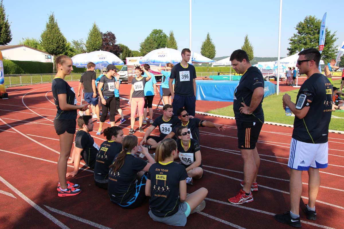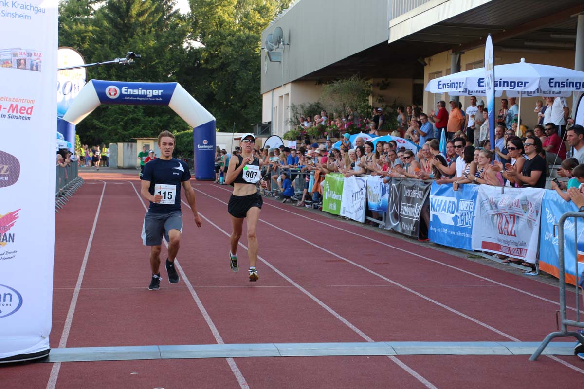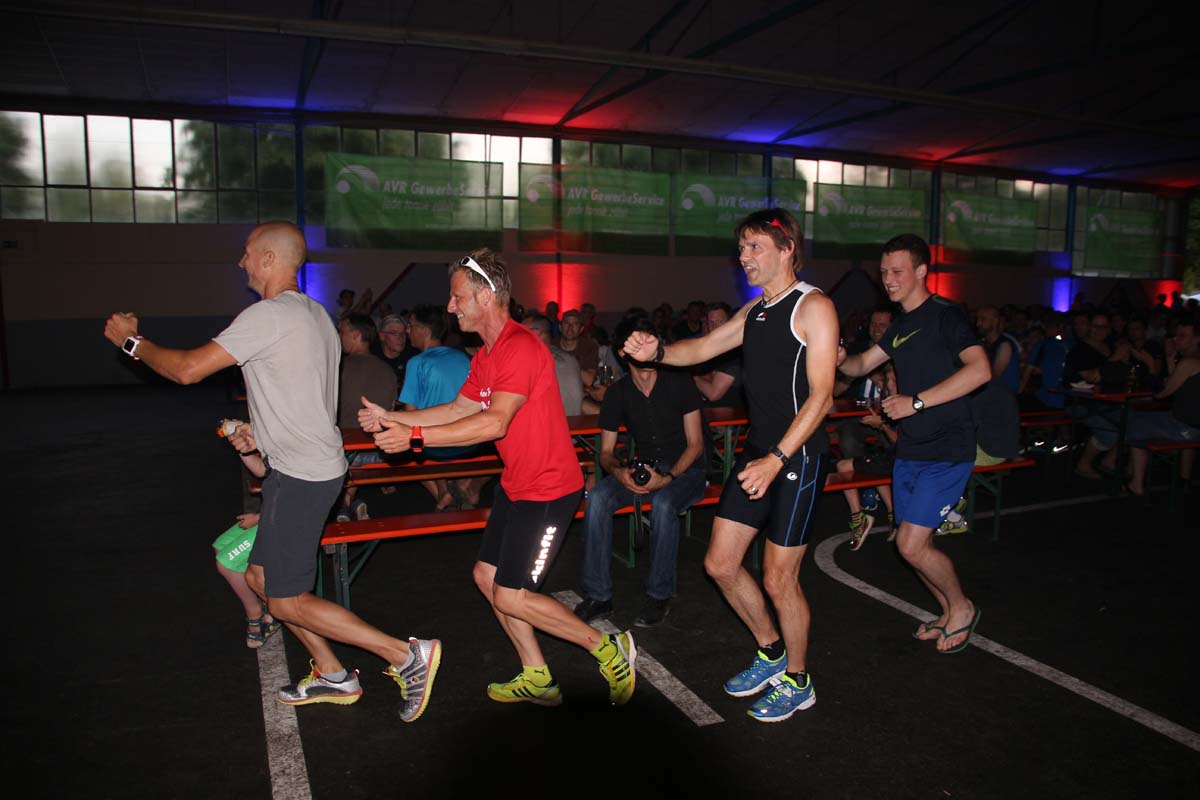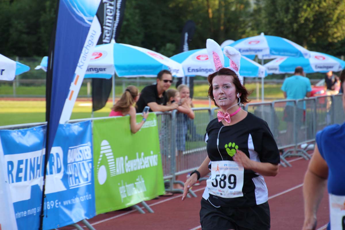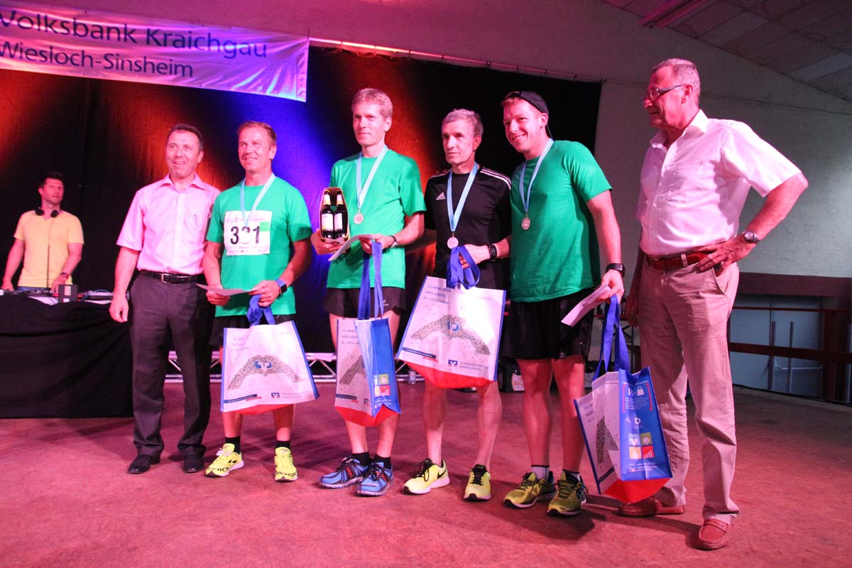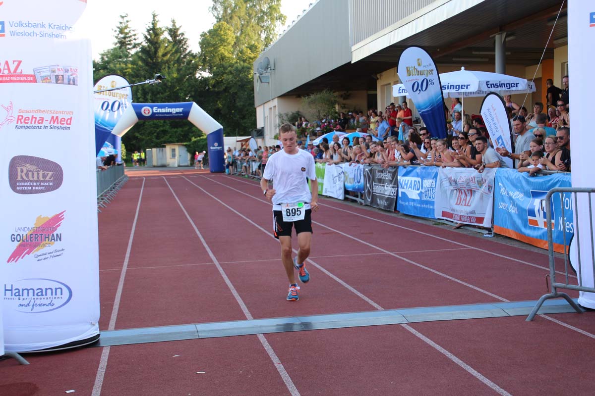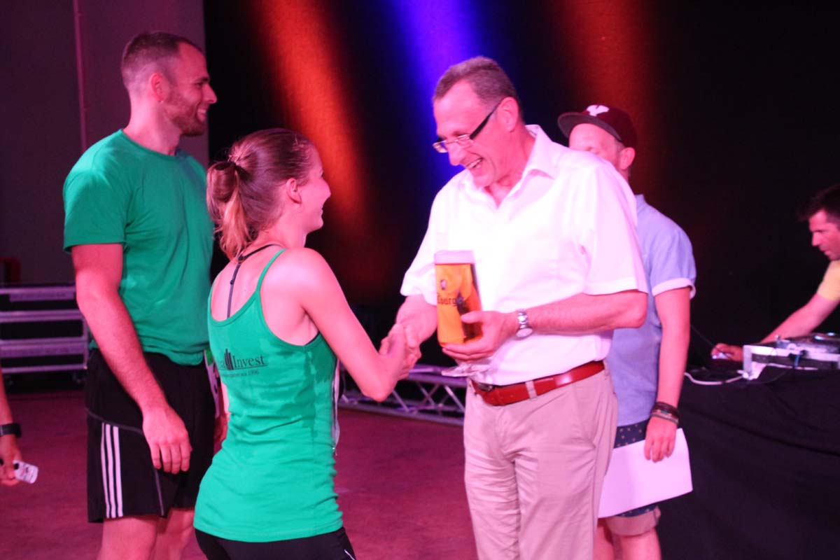 (cr) Glühender Asphalt unter den Füssen und trotzdem jede Menge Spass hatten die Teilnehmer beim diesjährigen Volksbank Firmenlauf mit einer neuen Rekordbeteiligung von fast 1200 Läuferinnen und Läufer. Mit Bitburger und Ensinger wurde aber auch kräftig für den Flüssigkeitshaushalt der Teilnehmer gesorgt, die Bäckerei Rutz steuerte frische Laugenstangen dazu. Für Abkühlung sorgte ein kleiner Pool schon im Vorfeld. Beim Reha Med Team konnte man sich vor und auch nach dem Lauf massieren lassen. Fast pünktlich um 19.00 Uhr fiel der Startschuss und einige Teilnehmer waren auch wieder sehr kreativ. Das Rutz Team lief mit einem riesigen Baguette, die Feuerwehr aus Weiler mit Schutzausrüstung, oder die AVR mit der grünen Tonne. Es war schon beeindruckend mit welchem Ehrgeiz viele Läufer eine Zeit von unter 20 Minuten schaffte. Für zwei Teilnehmer war es dann doch etwas zu viel und mussten vom DRK versorgt werden. Das riesige Laufspektakel endete mit einer grossen After Run Party in der Elsenzhalle mit Siegerehrung und Partymusik. Auch in diesem Jahr war die Volksbank mit dem Pokal für die meisten Teilnehmer nicht zu schlagen.