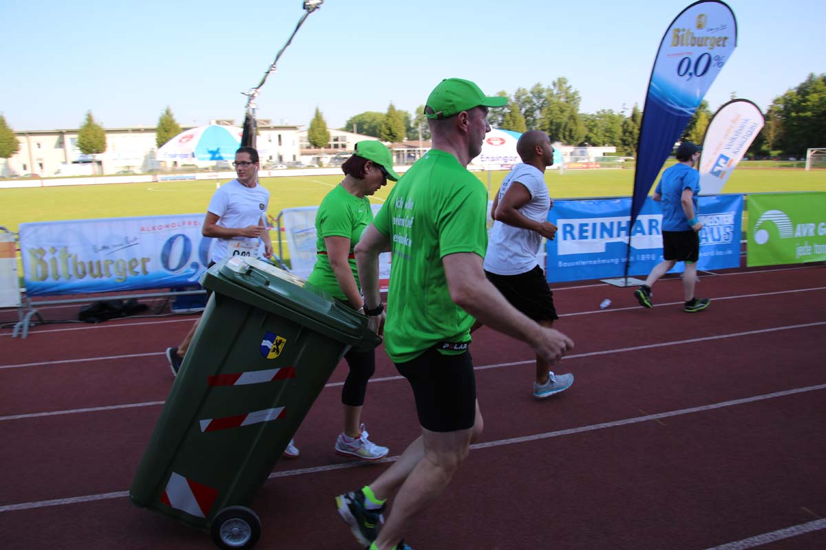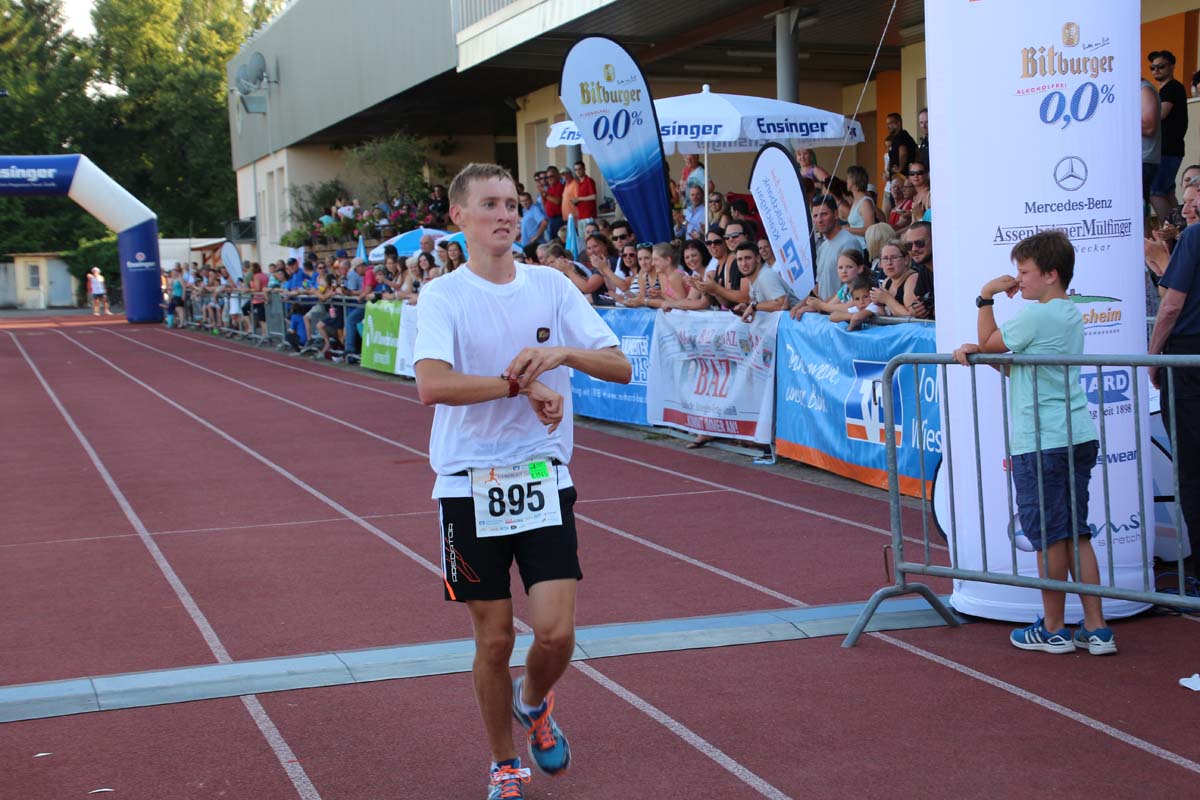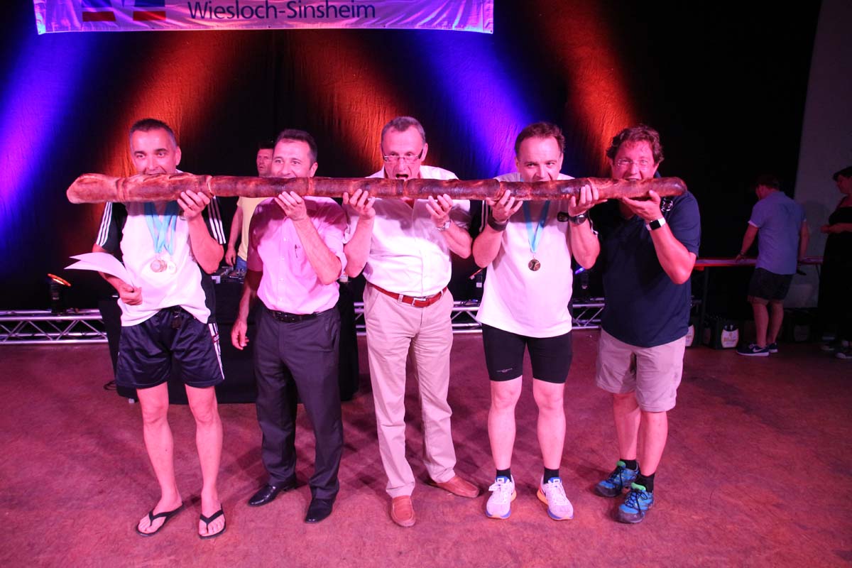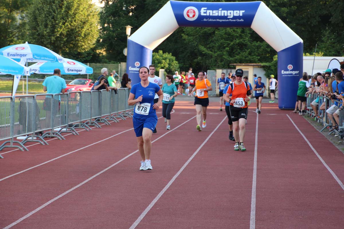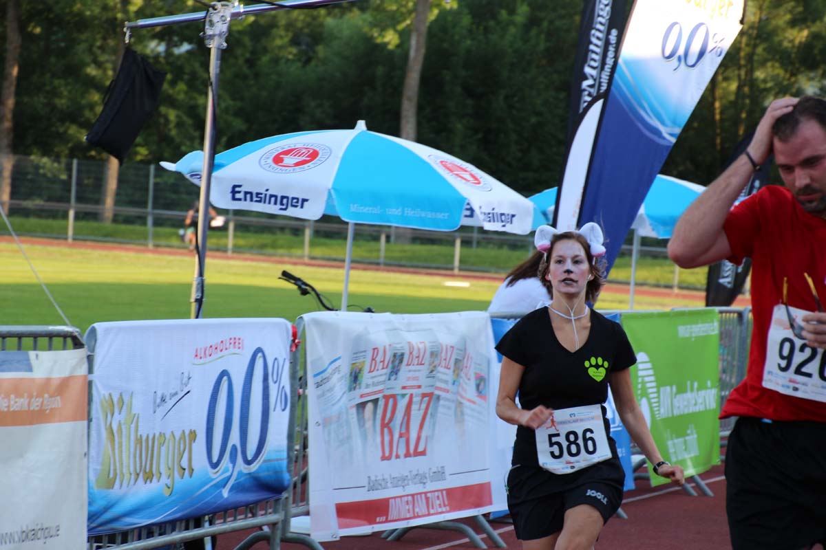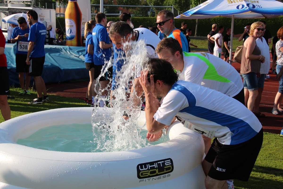 (cr) Glühender Asphalt unter den Füssen und trotzdem jede Menge Spass hatten die Teilnehmer beim diesjährigen Volksbank Firmenlauf mit einer neuen Rekordbeteiligung von fast 1200 Läuferinnen und Läufer. Mit Bitburger und Ensinger wurde aber auch kräftig für den Flüssigkeitshaushalt der Teilnehmer gesorgt, die Bäckerei Rutz steuerte frische Laugenstangen dazu. Für Abkühlung sorgte ein kleiner Pool schon im Vorfeld. Beim Reha Med Team konnte man sich vor und auch nach dem Lauf massieren lassen. Fast pünktlich um 19.00 Uhr fiel der Startschuss und einige Teilnehmer waren auch wieder sehr kreativ. Das Rutz Team lief mit einem riesigen Baguette, die Feuerwehr aus Weiler mit Schutzausrüstung, oder die AVR mit der grünen Tonne. Es war schon beeindruckend mit welchem Ehrgeiz viele Läufer eine Zeit von unter 20 Minuten schaffte. Für zwei Teilnehmer war es dann doch etwas zu viel und mussten vom DRK versorgt werden. Das riesige Laufspektakel endete mit einer grossen After Run Party in der Elsenzhalle mit Siegerehrung und Partymusik. Auch in diesem Jahr war die Volksbank mit dem Pokal für die meisten Teilnehmer nicht zu schlagen.