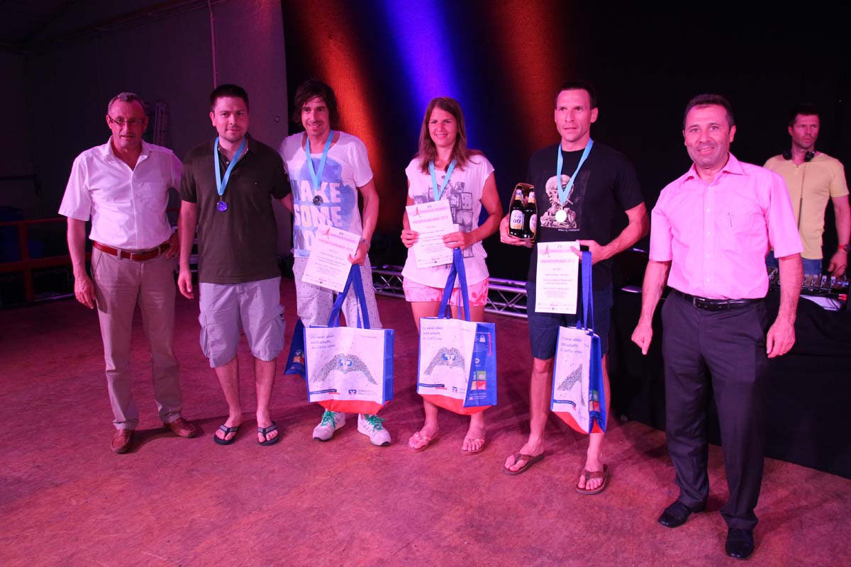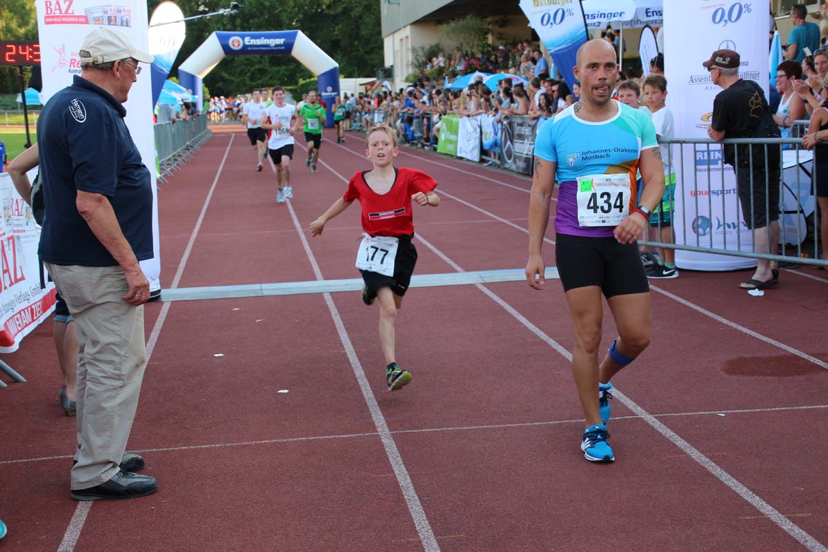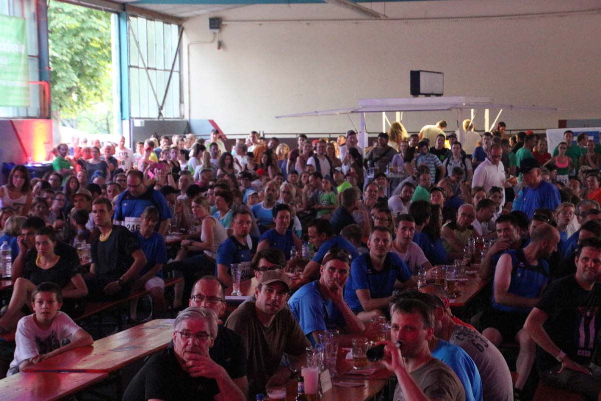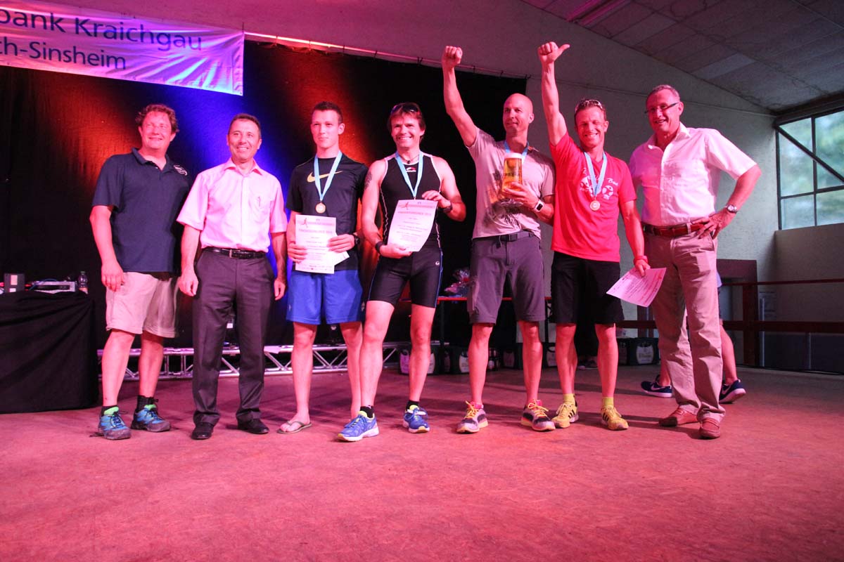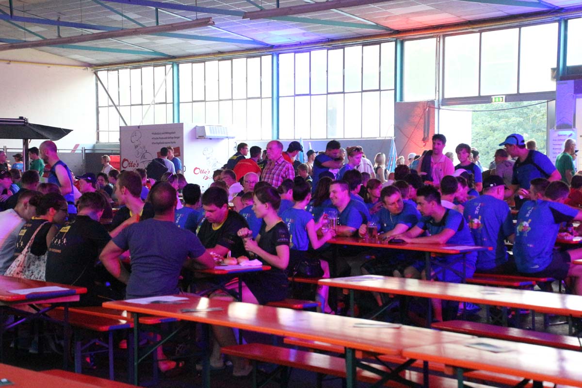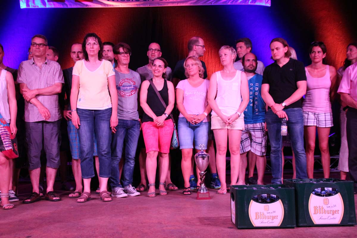 (cr) Glühender Asphalt unter den Füssen und trotzdem jede Menge Spass hatten die Teilnehmer beim diesjährigen Volksbank Firmenlauf mit einer neuen Rekordbeteiligung von fast 1200 Läuferinnen und Läufer. Mit Bitburger und Ensinger wurde aber auch kräftig für den Flüssigkeitshaushalt der Teilnehmer gesorgt, die Bäckerei Rutz steuerte frische Laugenstangen dazu. Für Abkühlung sorgte ein kleiner Pool schon im Vorfeld. Beim Reha Med Team konnte man sich vor und auch nach dem Lauf massieren lassen. Fast pünktlich um 19.00 Uhr fiel der Startschuss und einige Teilnehmer waren auch wieder sehr kreativ. Das Rutz Team lief mit einem riesigen Baguette, die Feuerwehr aus Weiler mit Schutzausrüstung, oder die AVR mit der grünen Tonne. Es war schon beeindruckend mit welchem Ehrgeiz viele Läufer eine Zeit von unter 20 Minuten schaffte. Für zwei Teilnehmer war es dann doch etwas zu viel und mussten vom DRK versorgt werden. Das riesige Laufspektakel endete mit einer grossen After Run Party in der Elsenzhalle mit Siegerehrung und Partymusik. Auch in diesem Jahr war die Volksbank mit dem Pokal für die meisten Teilnehmer nicht zu schlagen.