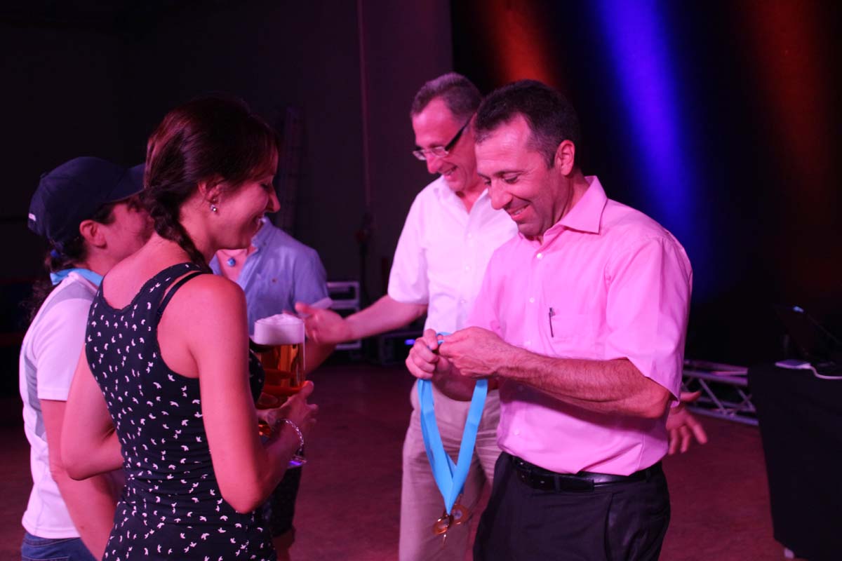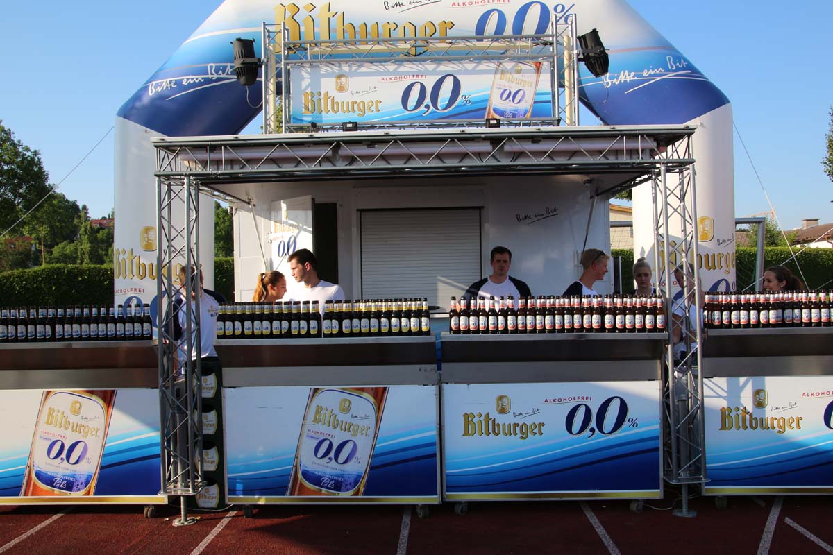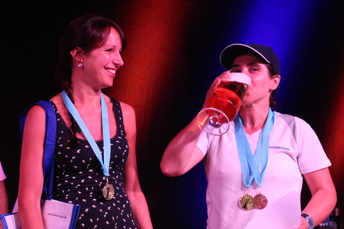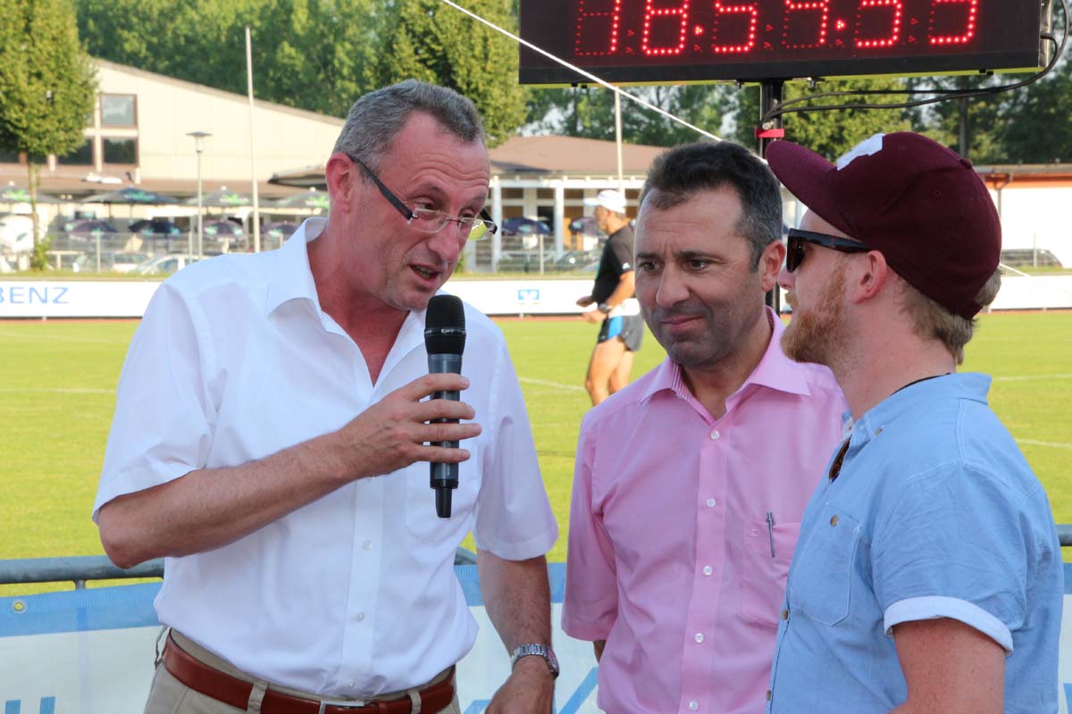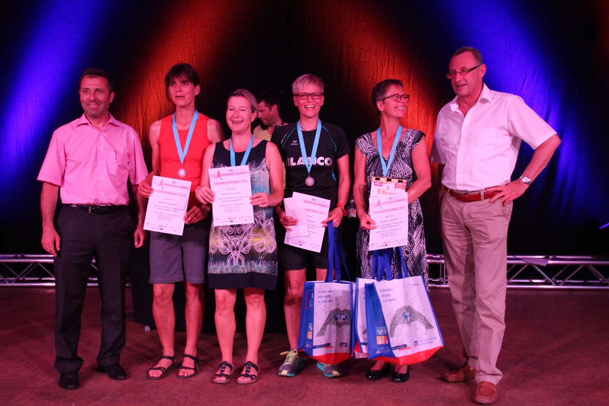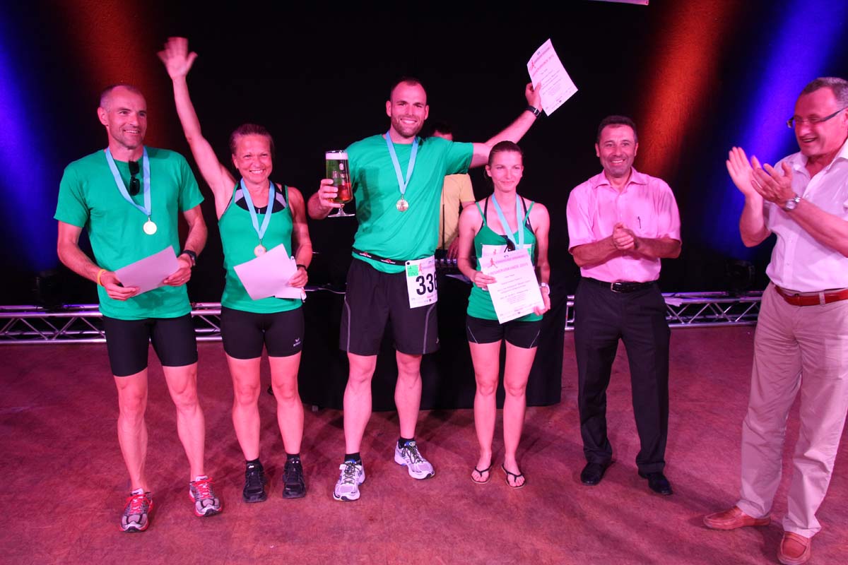 (cr) Glühender Asphalt unter den Füssen und trotzdem jede Menge Spass hatten die Teilnehmer beim diesjährigen Volksbank Firmenlauf mit einer neuen Rekordbeteiligung von fast 1200 Läuferinnen und Läufer. Mit Bitburger und Ensinger wurde aber auch kräftig für den Flüssigkeitshaushalt der Teilnehmer gesorgt, die Bäckerei Rutz steuerte frische Laugenstangen dazu. Für Abkühlung sorgte ein kleiner Pool schon im Vorfeld. Beim Reha Med Team konnte man sich vor und auch nach dem Lauf massieren lassen. Fast pünktlich um 19.00 Uhr fiel der Startschuss und einige Teilnehmer waren auch wieder sehr kreativ. Das Rutz Team lief mit einem riesigen Baguette, die Feuerwehr aus Weiler mit Schutzausrüstung, oder die AVR mit der grünen Tonne. Es war schon beeindruckend mit welchem Ehrgeiz viele Läufer eine Zeit von unter 20 Minuten schaffte. Für zwei Teilnehmer war es dann doch etwas zu viel und mussten vom DRK versorgt werden. Das riesige Laufspektakel endete mit einer grossen After Run Party in der Elsenzhalle mit Siegerehrung und Partymusik. Auch in diesem Jahr war die Volksbank mit dem Pokal für die meisten Teilnehmer nicht zu schlagen.