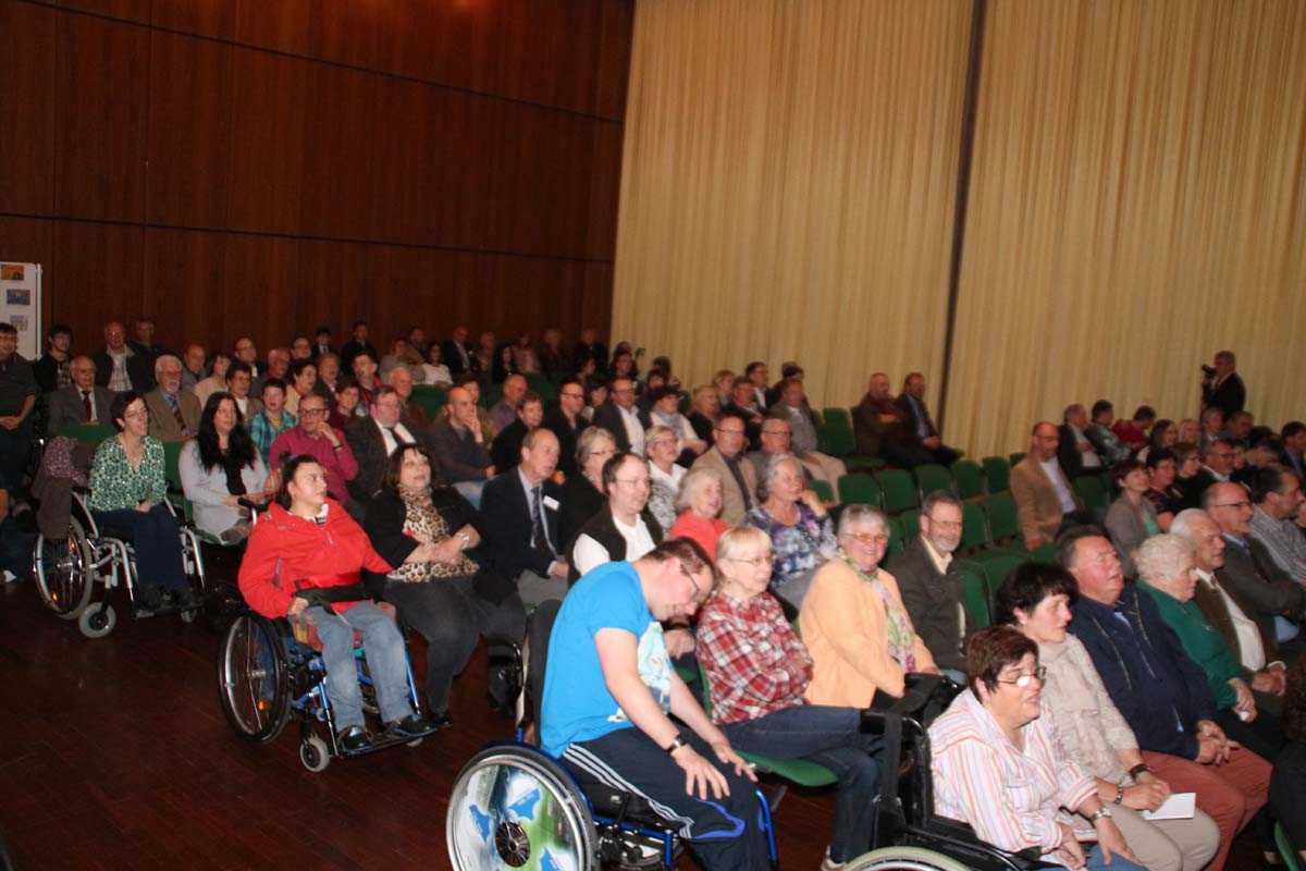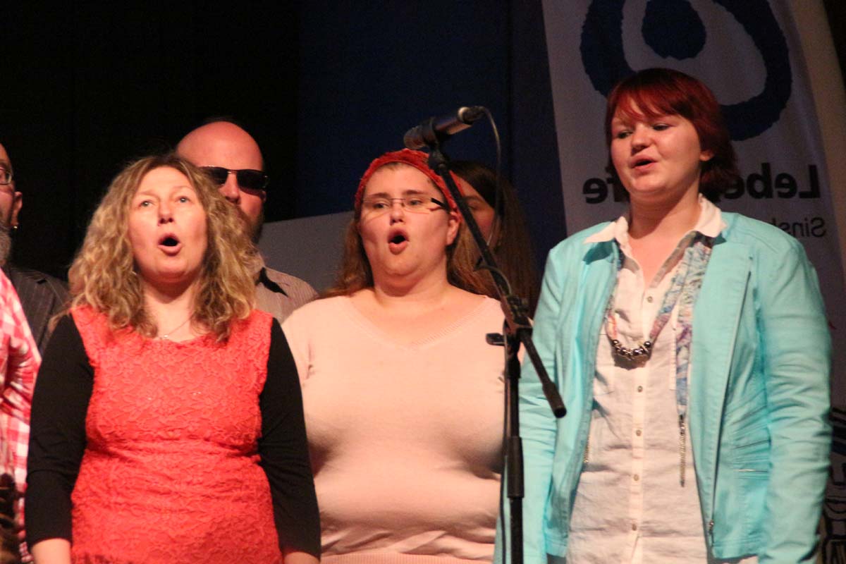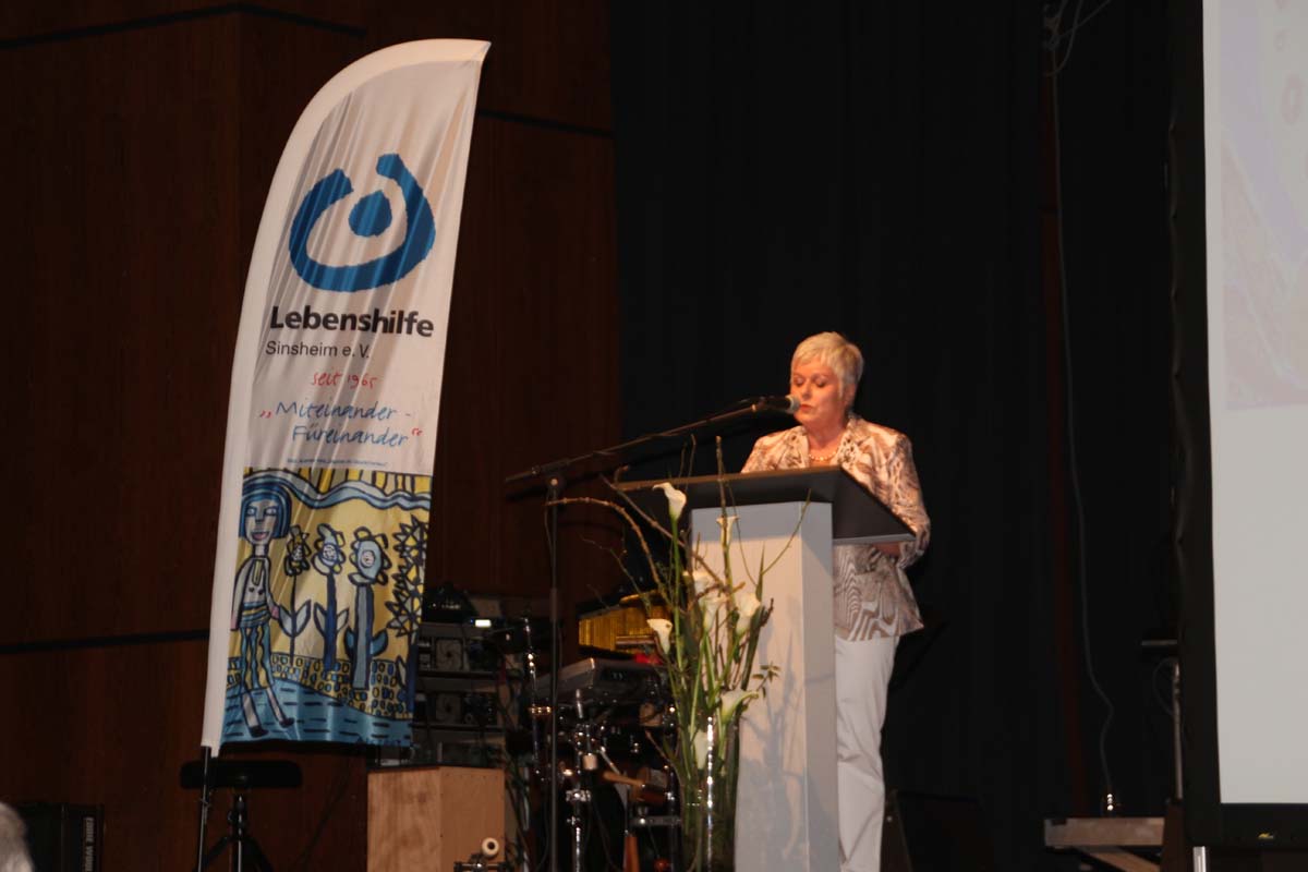 (cr) Besser hätte es der Werkstattchor der Lebenshilfe zum 50 jährigen Jubläum nicht ausdrücken können. Stimmgewaltig schmetterten sie diese Hymne von der grossen Stadthallenbühne hinunter in das zahlreich erschienene Publikum. 50 Jahre Lebenshilfe das ist eine Leistung die ist mehr als Anerkennung wert. Hier steckt mehr als Arbeit und Beruf dahinter. Wer die Lebenshilfe kennt der weiss hier wird Beruf zur Berufung und mit viel Liebe und Spass gearbeitet und das schon seit 50 Jahren. Die vielen Dankesworte können nicht ausdrücken was hier geleistet wurde. Mit einem klein Haus der Jugend wurde angefangen, heute umfasst die Lebenshilfe eine grosse Werkstatt, ein Wohnheim, offene Hilfen und vieles mehr. Mehr darüber können sie auch am 25. Juli bei einem grossen Strassenfest in der Adolf-Münzinger-Strasse erfahren und erleben. Diese Institution ist einfach vorbildlich und einzigartig und aus Sinsheim nicht mehr wegzudenken.