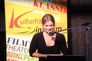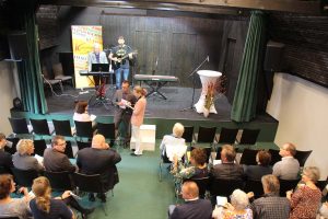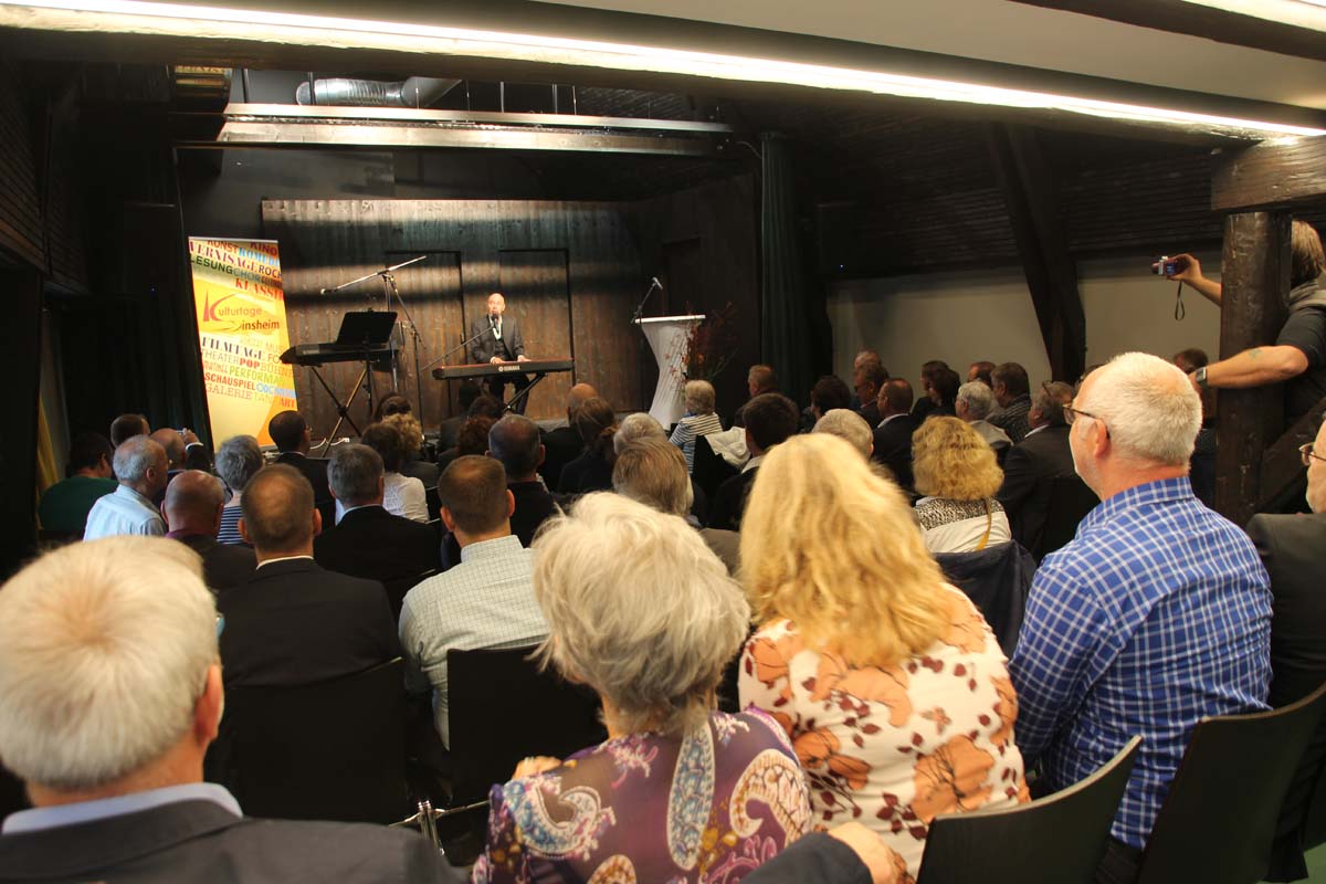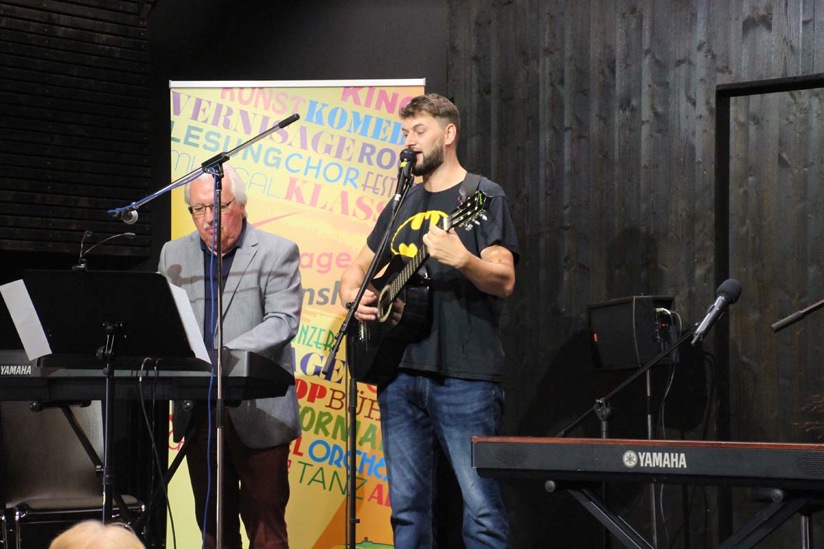 Arnim Töpel, der Masterbabbler und Verfechter von Mundart und Dialekt, war am Eröffnungstag der erste Künstler, der die Bühne betreten hat und über den Tag immer wieder musikalisch am Piano und mit viel Wortwitz in Texten begeisterte. Und auch Mitglieder des „Würfel-Ensembles“ spielten mehrmals ihren Sketch „Der Restaurantbesuch“ und das jüngste Ensemblemitglied Gina Waibel trug ihr selbstverfasstes Gedicht „Ich liebe Worte“ vor. Am 27. Oktober stehen Karl Schramms „Songs of Lou Reed“ und am 19. Januar 2019 Kabarett mit Thomas Schreckenberger auf dem Veranstaltungsplan.
