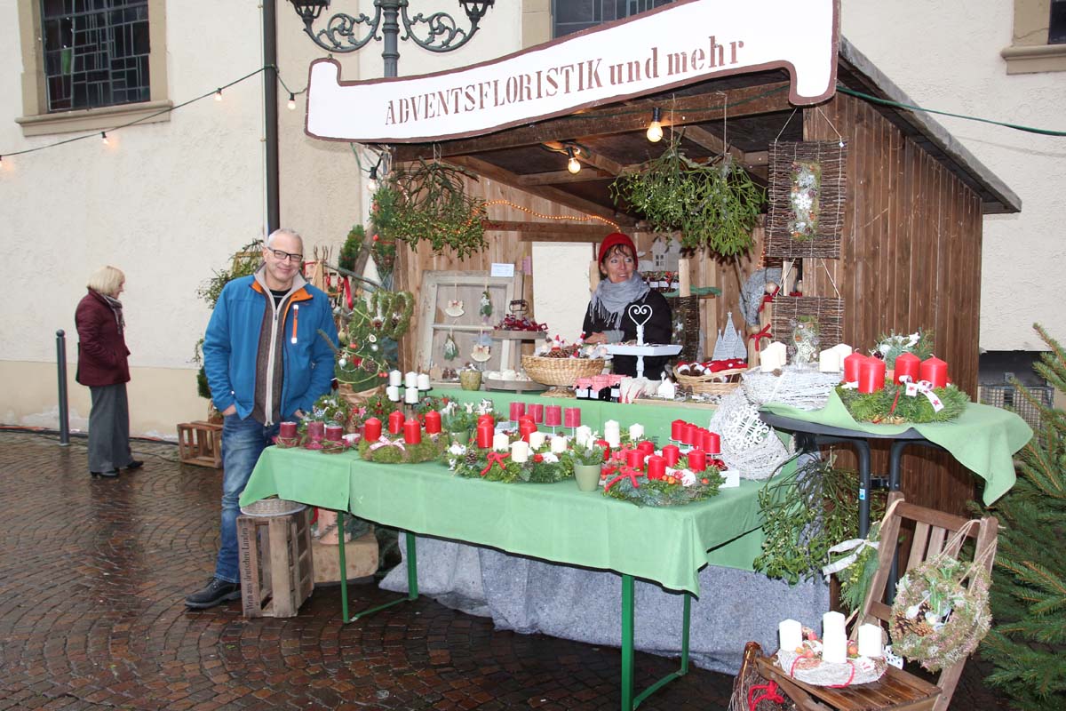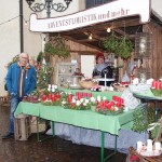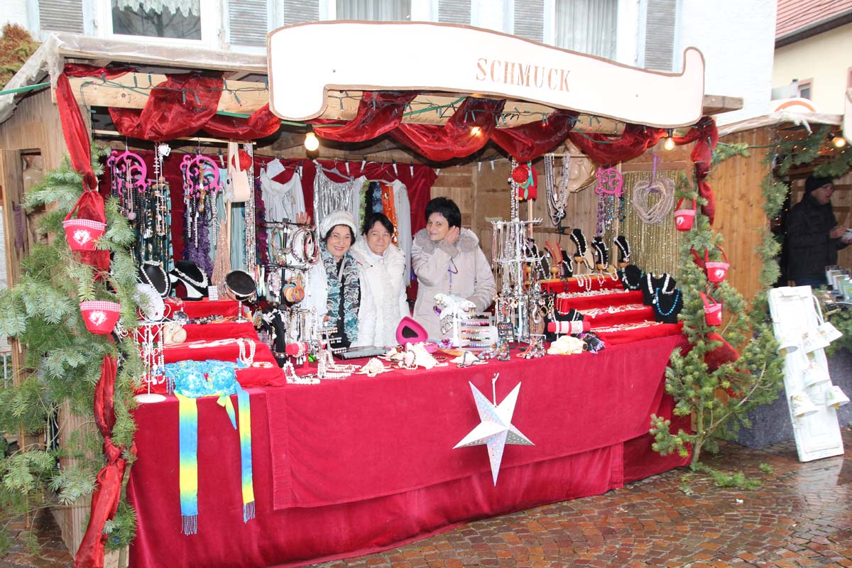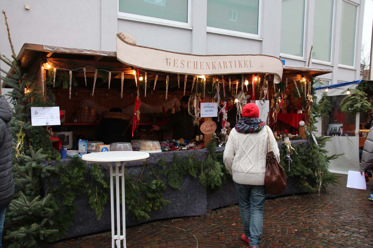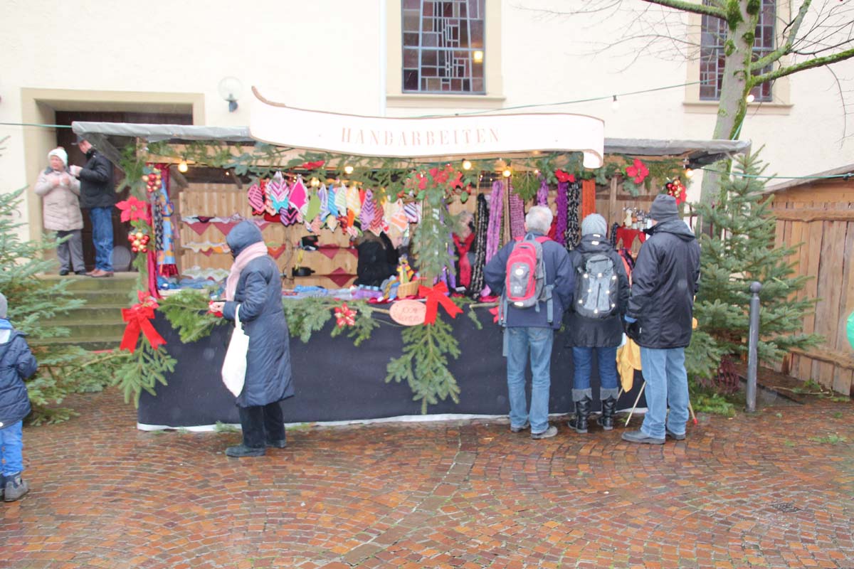 (cr) Schneeflocken am Samstag Morgen brachten ein wenig weihnachtlichen Flair. Doch leider hielt es nicht an und aus Schnee wurde Regen. Trotzdem waren die Weihnachtbuden um die evangelische Kirche wieder schön geschmückt und auch das Angebot war in diesem Jahr reichhaltig und sehr ausgewogen. Glühwein und Punsch konnte man gut vertragen. Zur Eröffnung mit dem Posaunenchor waren auch gerne wieder alle zusammen gekommen. Danach wurde zum Bummeln eingeladen und so konnte man auch das ein oder andere Geschenk für seine Liebsten finden. Alle hatten sich wieder viel Mühe gegeben. Unser Dank geht an alle die zum Gelingen dieses Weihnachtsmarktes beigetragen haben und vorallem die vielen Ehrenamtlichen mit ihren 100 % karitativen Ständen.