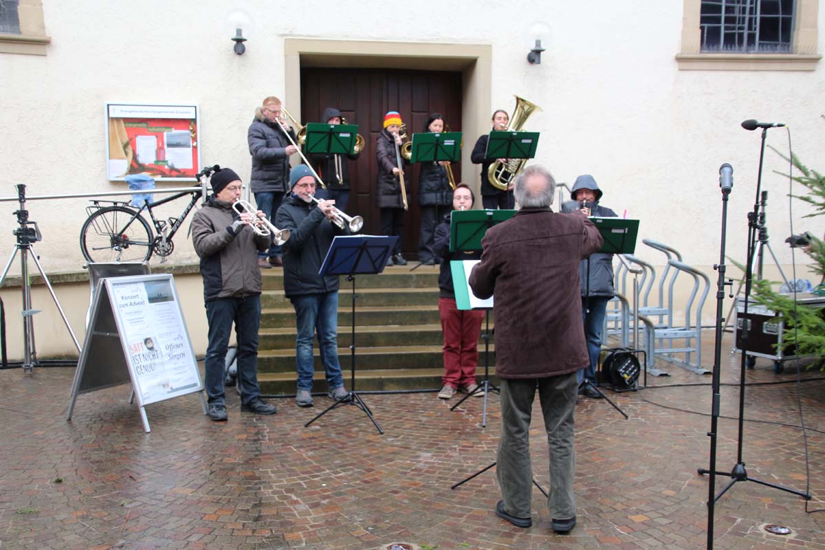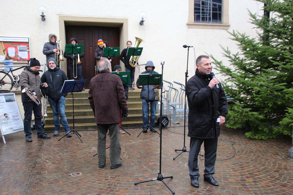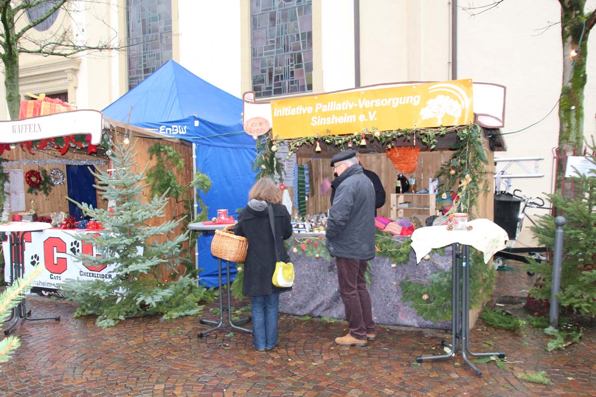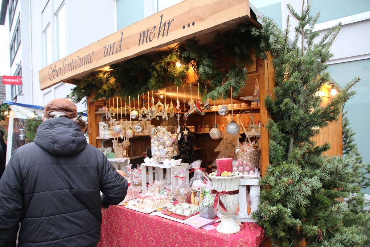 (cr) Schneeflocken am Samstag Morgen brachten ein wenig weihnachtlichen Flair. Doch leider hielt es nicht an und aus Schnee wurde Regen. Trotzdem waren die Weihnachtbuden um die evangelische Kirche wieder schön geschmückt und auch das Angebot war in diesem Jahr reichhaltig und sehr ausgewogen. Glühwein und Punsch konnte man gut vertragen. Zur Eröffnung mit dem Posaunenchor waren auch gerne wieder alle zusammen gekommen. Danach wurde zum Bummeln eingeladen und so konnte man auch das ein oder andere Geschenk für seine Liebsten finden. Alle hatten sich wieder viel Mühe gegeben. Unser Dank geht an alle die zum Gelingen dieses Weihnachtsmarktes beigetragen haben und vorallem die vielen Ehrenamtlichen mit ihren 100 % karitativen Ständen.