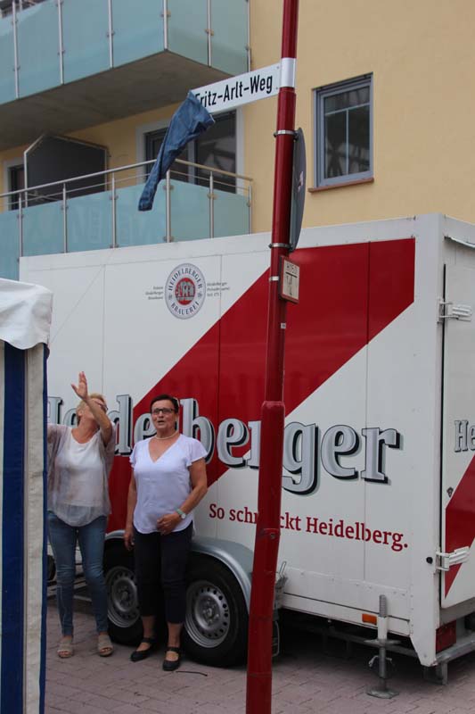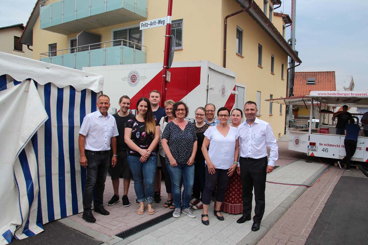 (cr) Ehre wem Ehre gebührt. Fritz Arlt hat jetzt in Eschelbach seinen eigenen Weg. Dieser wurde im Rahmen des Eschelbacher Dorffestes im Kreise der Familie und Ob Jörg Albrecht und dem Ortsvorsteher Wolfgang Maier eingeweiht. Fritz Arlt gehörte dem Ortschaftsrat Eschelbach von 1980 bis 2004 an und war von 1980 bis 2002 Ortsvorsteher von Eschelbach. Zudem war Fritz Arlt von 1999 bis 2004 Mitglied des Gemeinderates der Stadt Sinsheim.Eine besondere Ehre für einen verdienten Menschen
