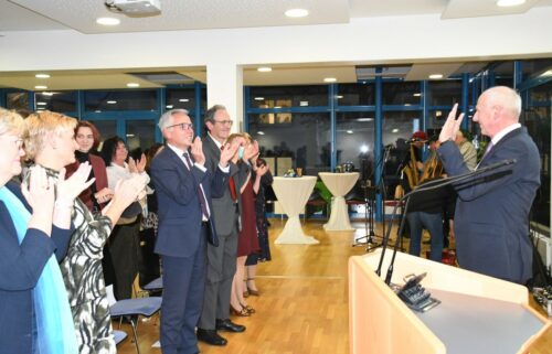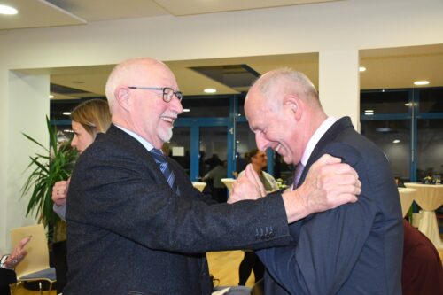 In Bezug auf die Ehrung richtete er seinen Dank auch an die Entscheidungsträger: „Diesen Ring habe ich den Aufsichtsräten zu verdanken, den Kreisräten. Vielen Dank für diese hohe Auszeichnung. Aber noch viel mehr danke ich Ihnen für die persönliche Unterstützung, vor allem für die finanzielle Unterstützung und, wenn es notwendig war, auch die politische Unterstützung – und auch bei Ihnen für das Vertrauen.“