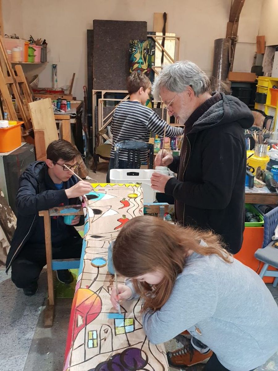 (Stadt Sinsheim): Berno Zwosta gestaltet mit Schülern eine Stele als Symbol der Freundschaft und Städtepartnerschaft zwischen Barcs und Sinsheim