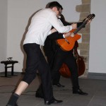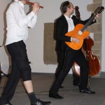 (cr) Das Warten hat sich mehr als gelohnt. Nachdem im letzten Jahr das Konzert wegen Krankheit des Bassisten leider ausfallen musste gab es jetzt das Ersatzkonzert. Wer an diesem Abend ein ruhiges Konzert mit Blockflöte, Contrabass und Gitarre erwartet hatte, der wäre hier fehl am Platze gewesen. Diese drei Musiker Tobias Reisige (Flöten), Anto Karaula (Gitarre) und Markus Conrads (Contrabass und Madoline) sind einfach nur unfassbar gut. An diesem Abend wurd gerockt was das Zeug hält und liess die alte ehrwürdige Stiftskirche in seinen Grundmauern erzittern. Ob auf der Bühne oder quer durch den Saal ob mit oder ohne Verstärkung, besser kann man sein Publikum nicht mitreissen. Manch einer ärgerte sich bestimmt nach diesem Konzert das er als Kind die verhasste Blockflöte in die Ecke geworfen hatte. Den was man mit so einem Instrument anstellen kann, stellte Tobias beeindruckend unter Beweis und machte auch vor AC/DC und Michael Jackson nicht halt. Er ist der heimliche Star der Truppe. Damit möchte ich jedoch nicht die beiden anderen Musiker zurücksetzen, denn die Flöte alleine wäre dann doch ein bischen wenig. Dieses Trio Infernale trieb es einfach 2 Stunden lang richtig bunt und liessen die Sinsheimer in riesige Begeisterungsstürme ausarten.