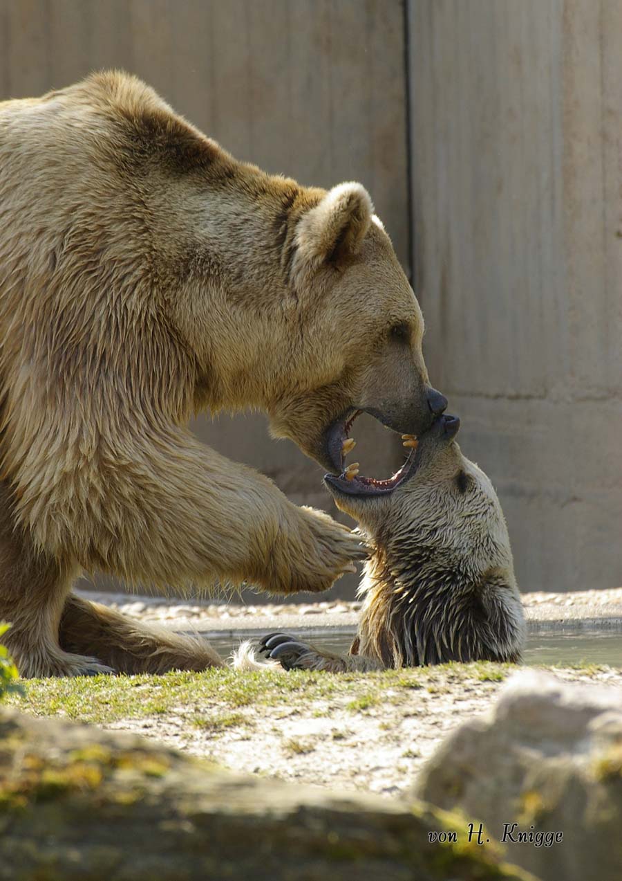 Dass „sich gerne neckt, was sich liebt“ kann man zum Beispiel bei den Syrischen Braunbären beobachten. Ob sie nach der Paarung wohl lieber getrennte Wege gehen oder in ihrem nagelneuen, weitläufigen Gehege doch vielleicht gemeinsam nach Honig suchen? Sicher wird dies der Zooranger gern verraten, der mit tierischem Insiderwissen, jeder Menge Naturmaterialien und einer guten Prise Humor durch den Zoo führt. Ob traditionelle Einehe oder Harem, ob Homo oder Hetero – für sämtliche Varianten menschlichen Zusammenlebens lassen sich im Tierreich interessante Entsprechungen finden. So sind neben Wildgänsen, Schwänen und vielen anderen Vogelarten auch Störche für ihre lebenslange Treue bekannt. Vor einiger Zeit gab es jedoch auch im Heidelberger Zoo einen „Ausnahme-Storch“: als seine Angetraute nicht rechtzeitig auftauchte, wandte er sich einer neuen Liebe zu und begann mit dieser den Nestbau. Als seine Herzensdame vom Jahr davor schließlich doch noch verspätet eintraf, gab es Zoff. Der verantwortungsbewußte Adebar kümmerte sich nun um beide Weibchen samt Nachwuchs und kam mit der Versorgung des doppelten Haushalts kaum nach… Auf jeden Fall läßt sich’s im Heidelberger Tiergarten offensichtlich besonders gut leben – und lieben: 20 Weißstorch-Paare kümmern sich hier derzeit um ihre Nachkommen! Gorillamann Bobo, der stattliche Silberrücken, hat in seinem Harem gleich drei verschiedene Damen zu beglücken und auch Seelöwenbulle Atos hält es mit der Vielweiberei. Außerdem zeigt es sich wieder einmal, dass es nicht immer auf die Größe ankommt, denn gerade die Winzlinge haben in punkto Liebe manch pikantes Detail zu bieten: vom unvergleichlich langen Liebesakt der Schnecken bis hin zu den Tricks, mit denen sich Spinnen-Männchen Zugang zu ihrer Angebeteten verschaffen.