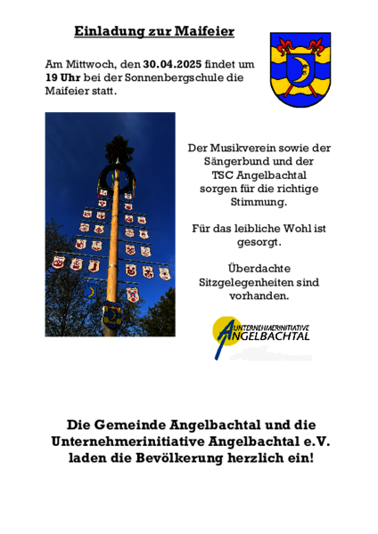 Die Gemeinde Angelbachtal sowie die Unternehmerinitiative Angelbachtal e.V. laden die Bevölkerung herzlich zur Teilnahme ein.