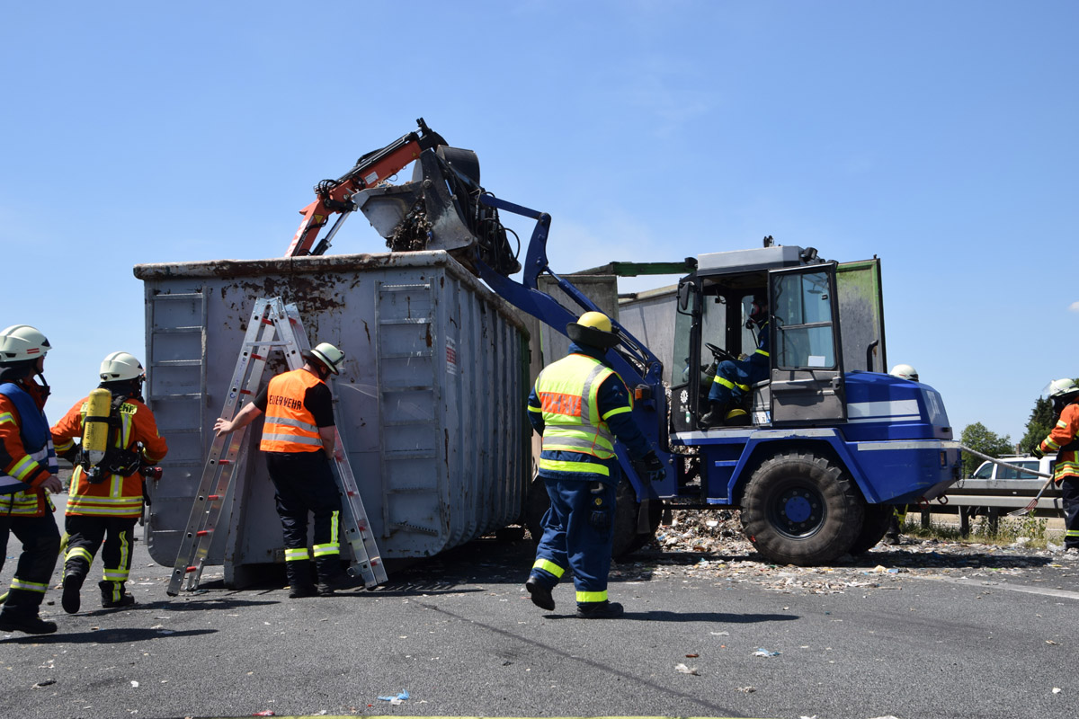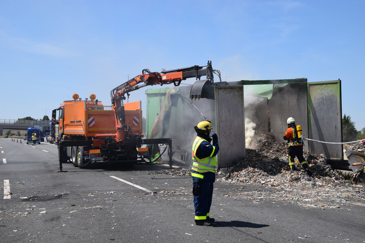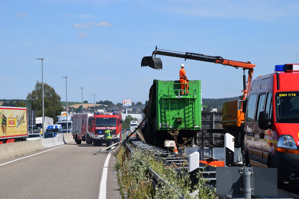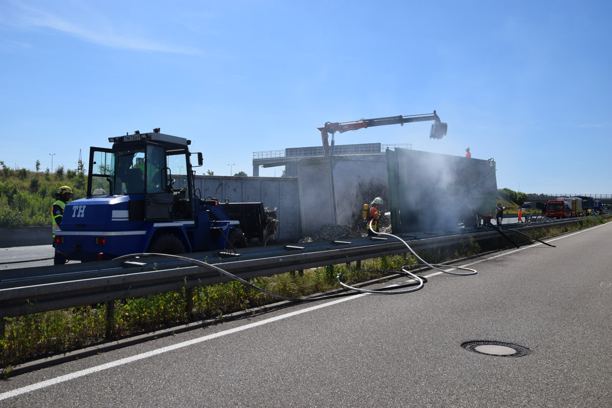 Sinsheim. (red) Nach dem Lkw-Brand auf der A6 heute Mittag dauern derzeit noch die Aufräumarbeiten an. Die Autobahn ist nach wie vor voll gesperrt. Hilfskräfte von Feuerwehr und THW arbeiten Hand in Hand um die Fahrbahn schnell freigeben zu können. In der folgenden Bildergalerie sieht man die Arbeit der Einsatzkräfte.