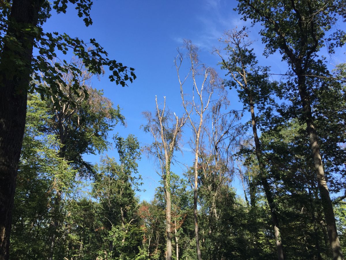 Das beschreibt auch die grundsätzliche Vorgehensweise des Kreisforstamts in den Hardtwäldern: eingeschlagen werden nur „rote“ Bäume – und davon auch nur ein kleiner Teil, da die Kapazitäten beim Holzabsatz begrenzt sind. Abgestorbene Bäume werden deshalb an vielen Stellen stehen bleiben und die Waldbilder prägen.