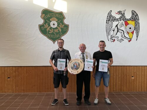 Besonders treffsicher erwies sich diesmal Helmut Binder mit einem 50,3 Teiler und wurde damit Schützenkönig. Dem neuen Schützenkönig stehen als 1. Ritter Karsten Rudolf mit einem 50,6 Teiler und als 2. Ritter Jan Haißer mit einem 56 Teiler zur Seite.