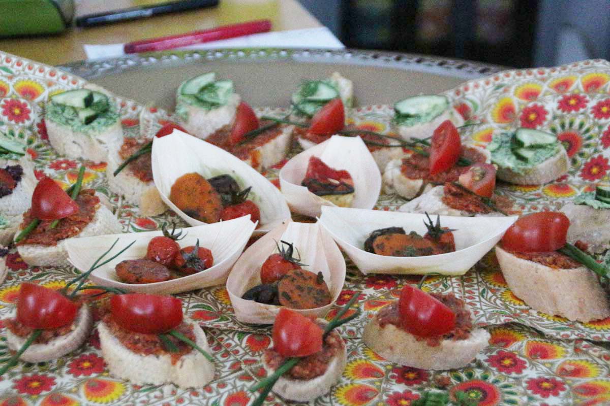 Anzeige SwopperDas Publikum war auch entsprechend gut vorbereitet, denn statt einer Bestuhlung sass man auf mitgebrachten Kissen und Fellen auf dem Boden. Gereicht wurden von der netten Gastgeberin Martina und ihrem Team vegane Köstlichkeiten.