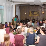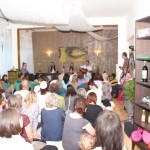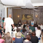 Das Publikum war auch entsprechend gut vorbereitet, denn statt einer Bestuhlung sass man auf mitgebrachten Kissen und Fellen auf dem Boden. Gereicht wurden von der netten Gastgeberin Martina und ihrem Team vegane Köstlichkeiten.