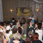 (cr) Das neue Kundalini Yoga Zentrums in Sinsheim in der Rosenpassage von Marina Latincic wartete am Samstag Abend mit einem ganz besonderen Leckerbissen auf. Zu Gast waren The Love Keys und Anandini mit einem Mantra Konzert. Und das war ein Konzert nicht nur für Yoga Enthusiasten. Warme angenehme Klänge mit Gitarren, E-Piano, Cajon und einem selten gehörten Instrument dem Harmonium, entführten das Publikum in eine ganz andere Welt. Dazu verzauberte die faszinierende Stimme von Anandini, die mich ein wenig an die Klasse von Katie Melua erinnerte. Entspannt und unaufdringlich wurde das Publikum von der charmanten Sängerinnen zum mitmachen animiert.