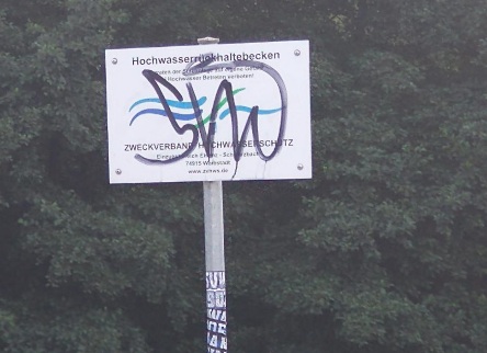 In der Waldstraße, auf Höhe des Schützenhauses, wurde eine öffentliche Einrichtung durch Graffiti beschädigt. Die Gemeinde hat in diesem Fall Strafanzeige erstattet. Laut Verwaltung häufen sich aktuell Fälle von Graffiti und Aufklebern an Verkehrsschildern sowie weiteren öffentlichen Einrichtungen im gesamten Gemeindegebiet.