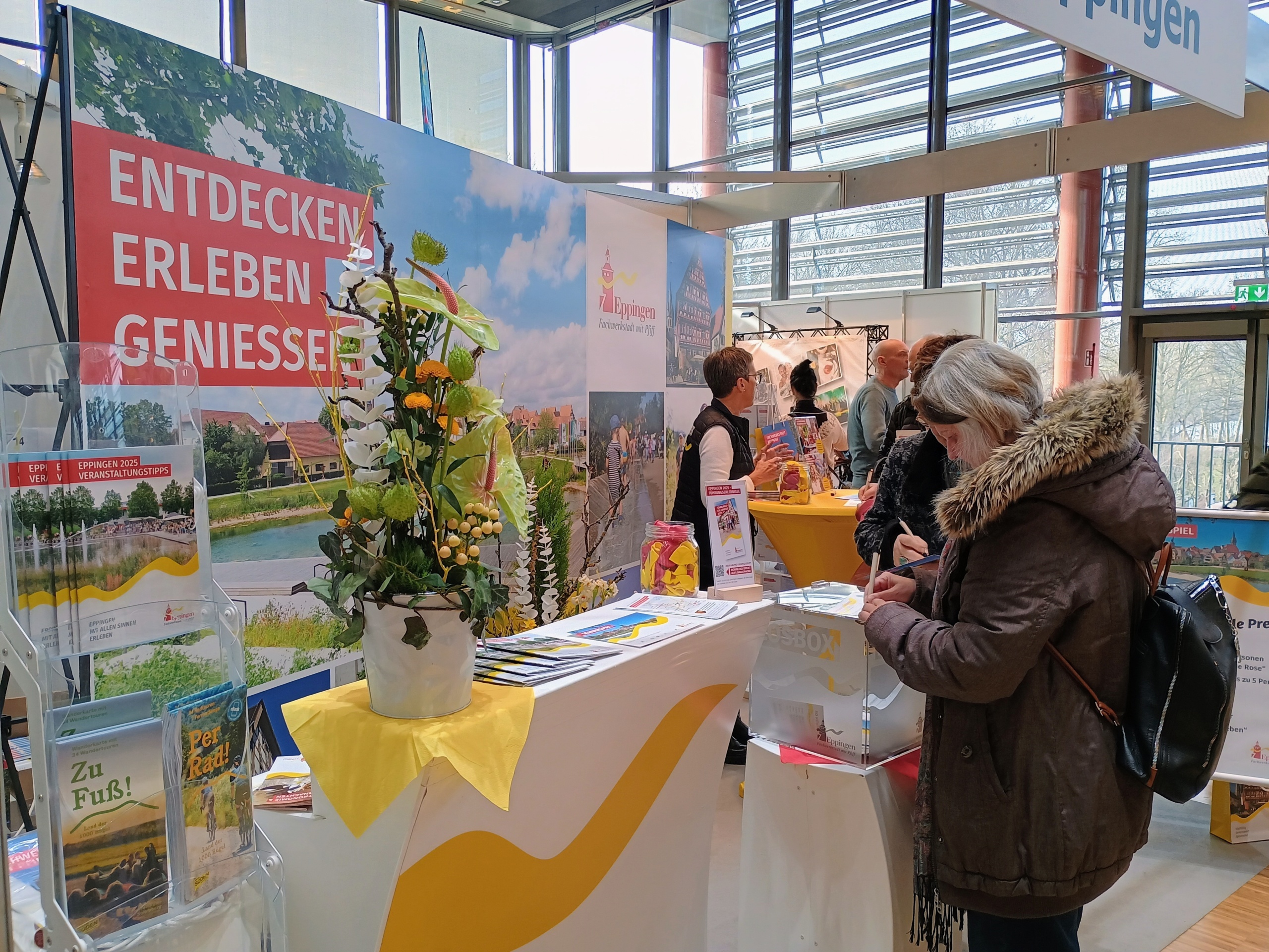 Ein weiteres Highlight war die große Auswahl an Broschüren, die die touristischen Attraktionen Eppingens vorstellten. Auch die Möglichkeit, Souvenirs mit einem Rabattcoupon zu erwerben, stieß bei den Messebesuchern auf positive Resonanz. Der Rabatt galt für Souvenirs, die in der Stadtinformation am Marktplatz erhältlich sind.