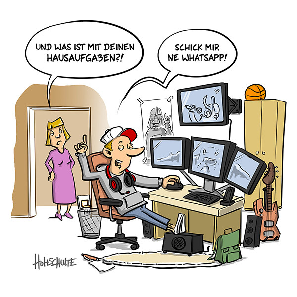 „In der Pubertät sind häufig andere Dinge interessanter, als die Schule. (Cartoon: Michael Holtschulte)“
