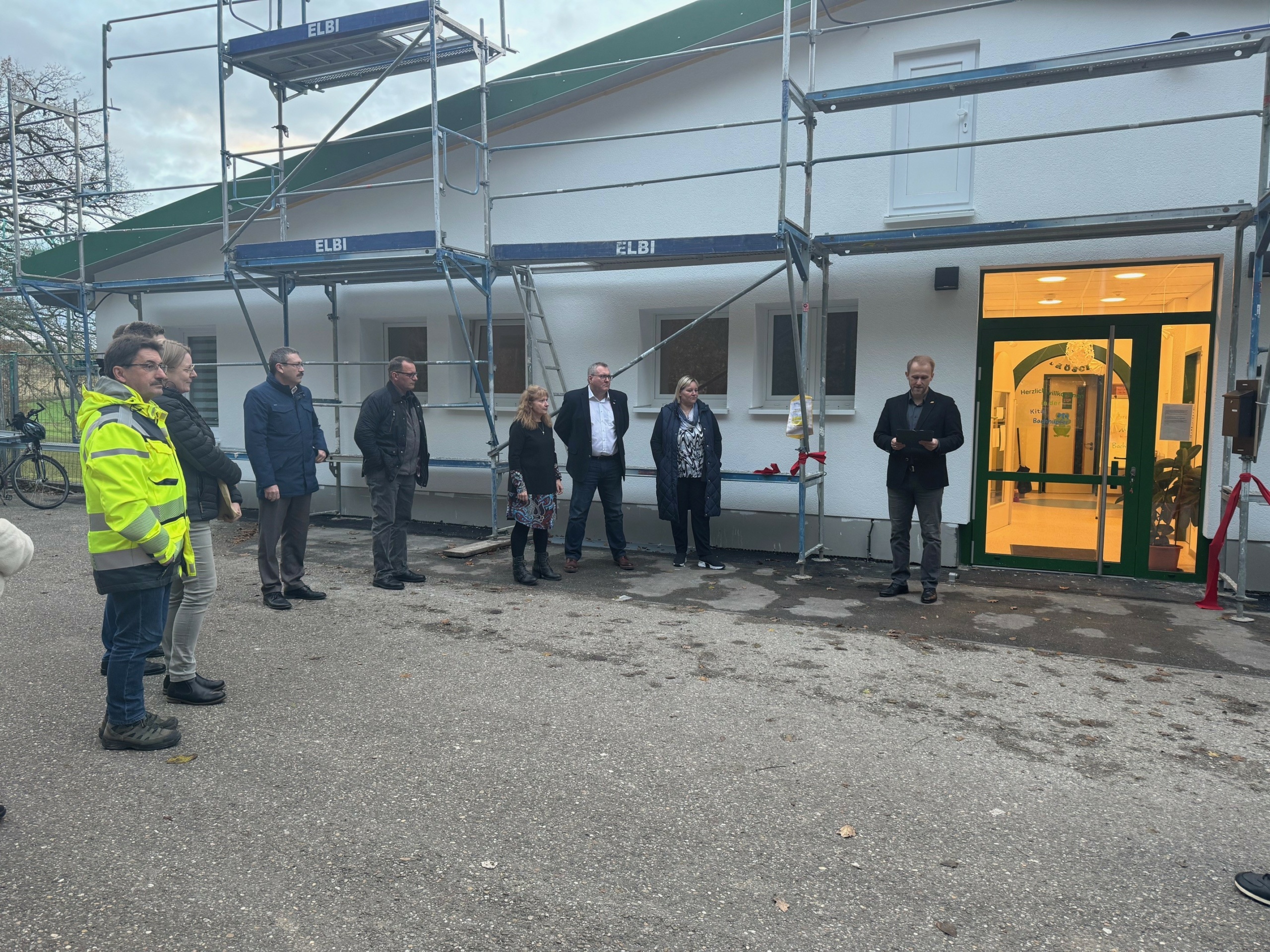Oberbürgermeister Marco Siesing betonte vor Ort erneut die Bedeutung des Ausbaus der Kinderbetreuungsplätze. Er dankte allen Projektbeteiligten, den städtischen Mitarbeitenden sowie Ortsvorsteher Peter Trost und dessen Vorgänger Wolfgang Maier.