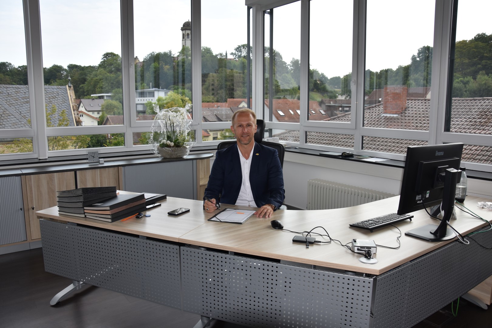 Die Mitarbeiter der Stadt Sinsheim ließen es sich nicht nehmen ihren neuen Chef zu begrüßen und gleichzeitig zum Geburtstag zu gratulieren. Die erste Woche steht ganz im Zeichen des Ankommens und Kennenlernens. Zu seinem Dienstantritt warteten bereits viele Mails, Fragen und einiges an Post auf den neuen Oberbürgermeister.