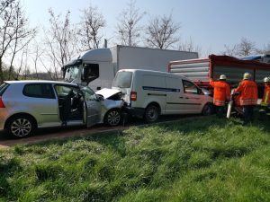 Derzeit kommt es aber auch auf der Umleitungsstrecke, B292/B39, zwischen Sinsheim-Dühren und Eschelbach aufgrund eines Auffahrunfalls mit drei beteiligten Fahrzeugen zu Verkehrsbehinderungen. Nach derzeitigem Kenntnisstand wurden dabei vier Personen verletzt. Über die Schwere der Verletzungen ist jedoch noch nichts bekannt. Mehrere Rettungswagen, ein Notarzt sowie ein Rettungshubschrauber sind im Einsatz.