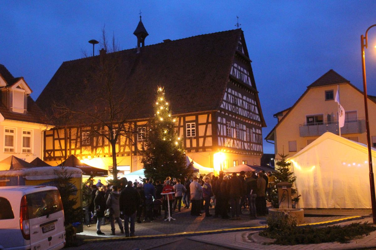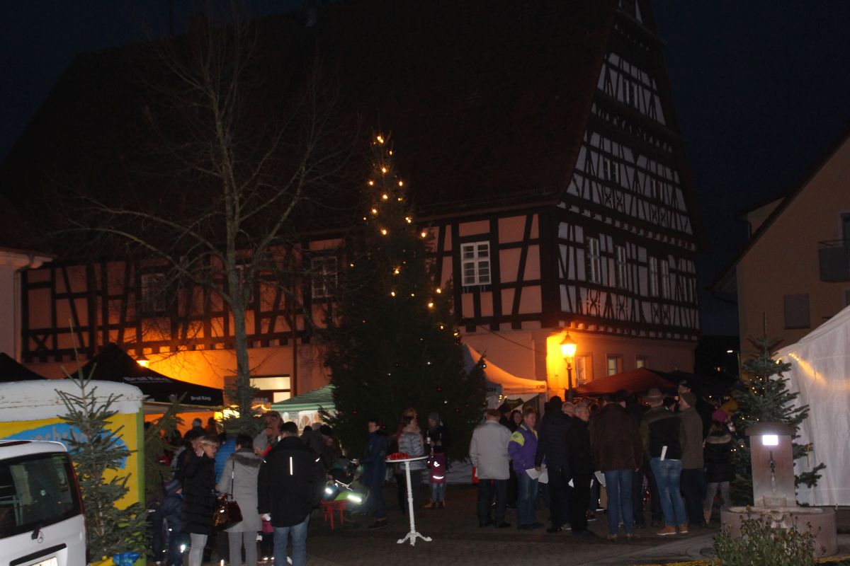 (cr) In Eschelbach nennt man es Winterzauber da man es wegen der Grösse nicht Markt nennen durfte. Das tut der weihnachtlichen Stimmung aber keinen Abbruch. Weihnachtliches feiern macht auch in kleiner Runde viel Spass. Hier schmeckt neben dem Glühwein auch ein Weihnachtsbier, da haben Orstvorsteher und Oberbürgermeister gut lachen.