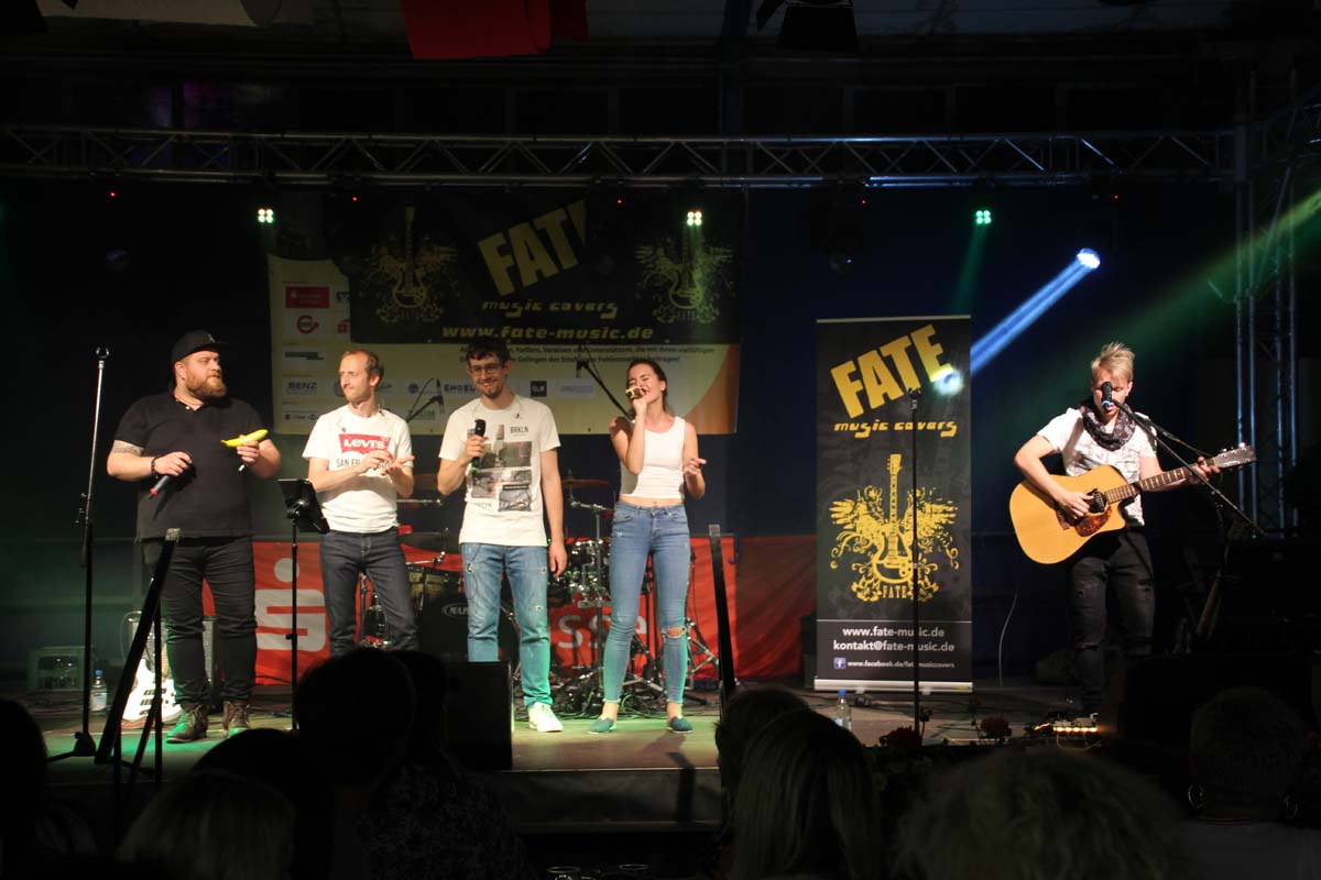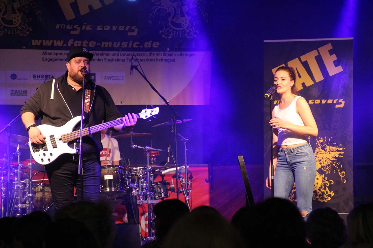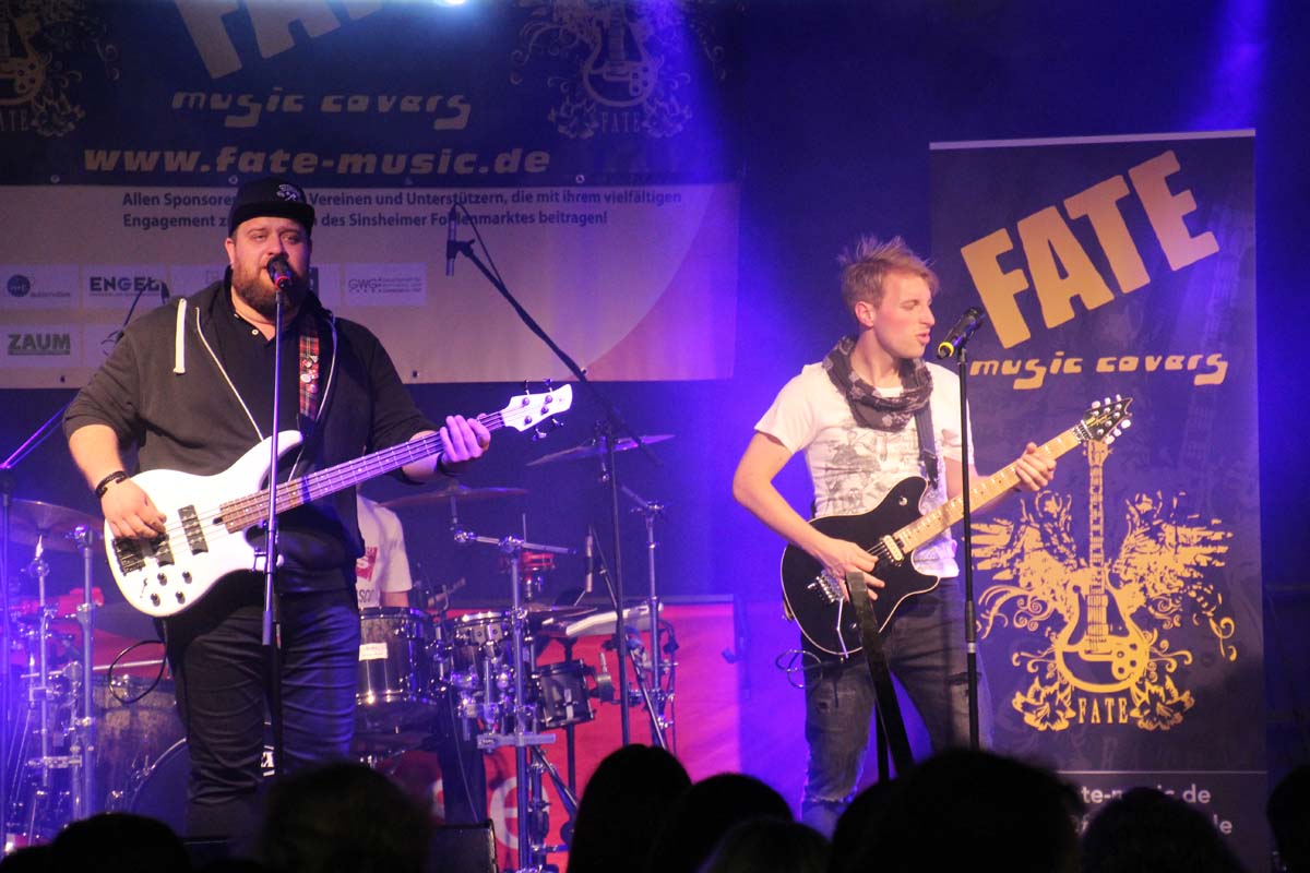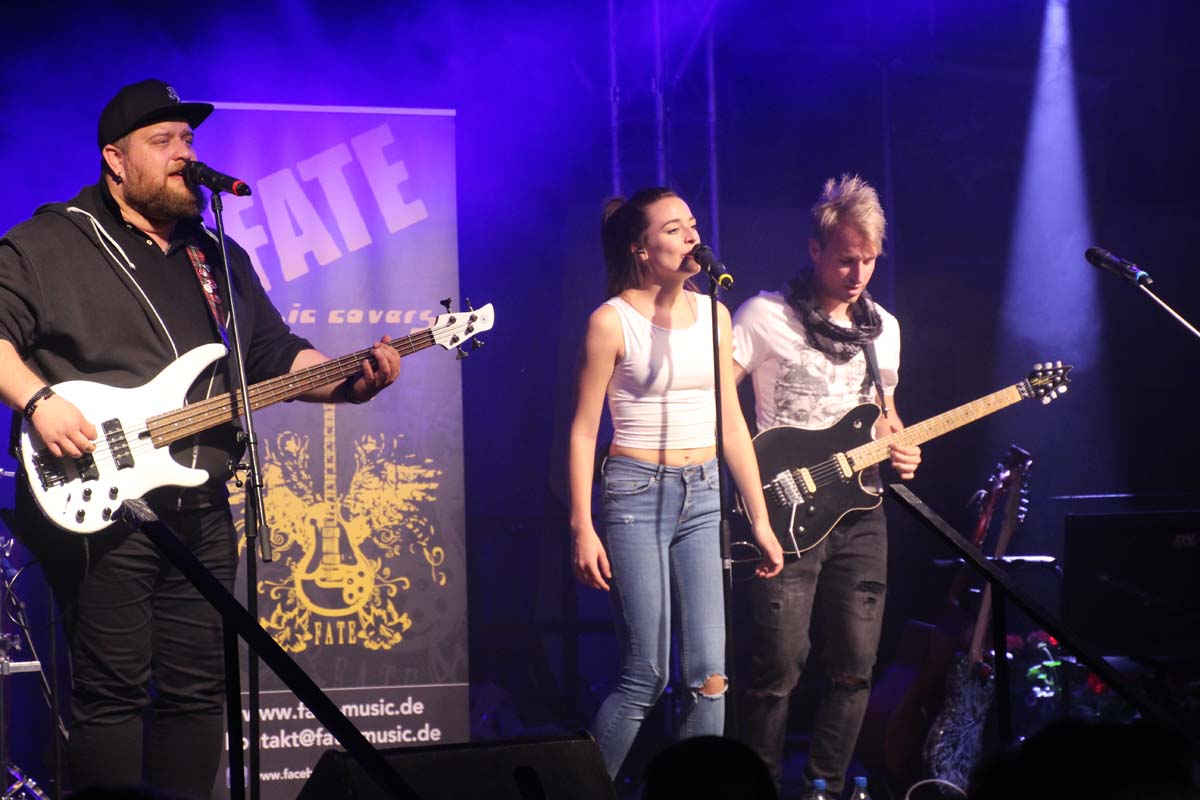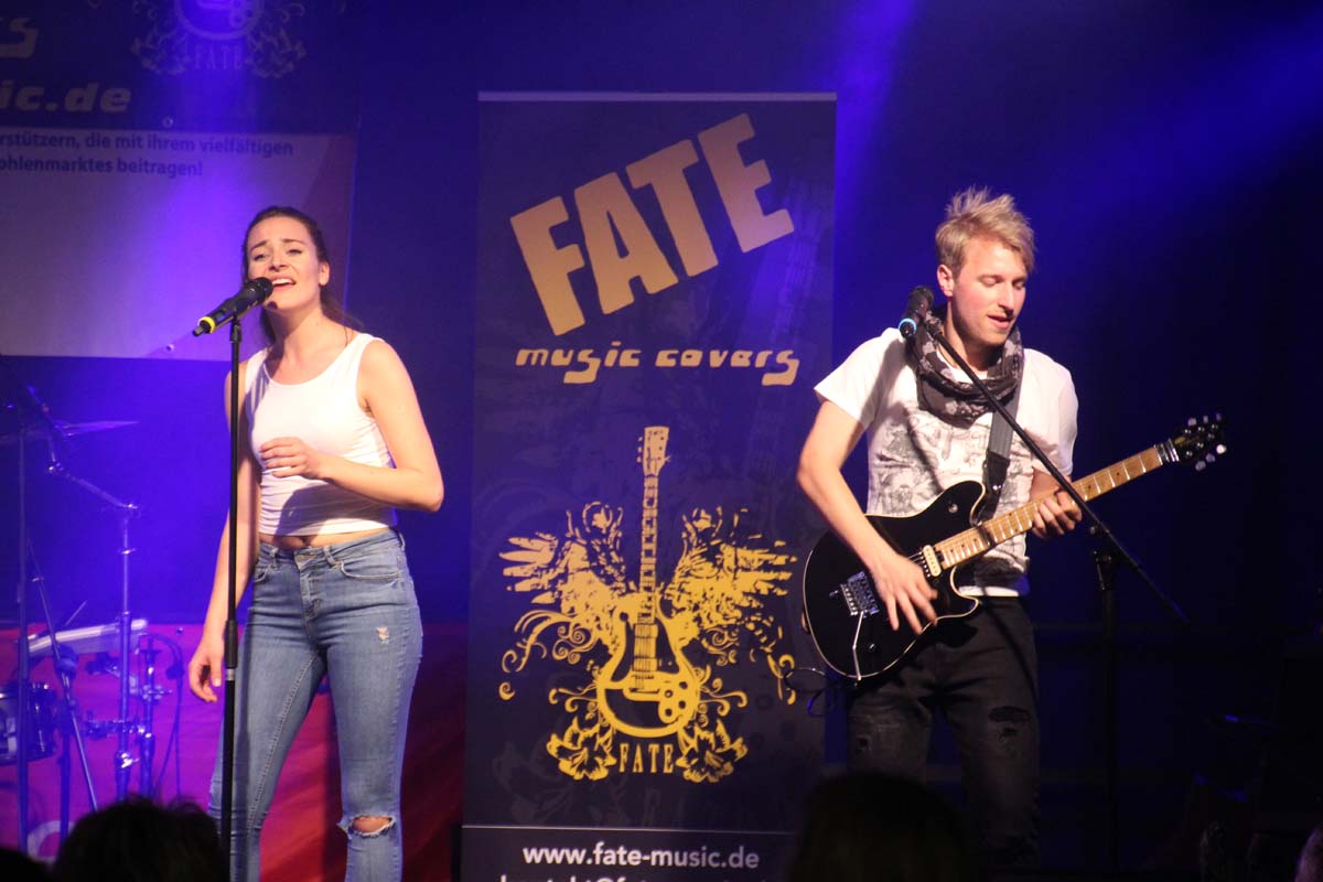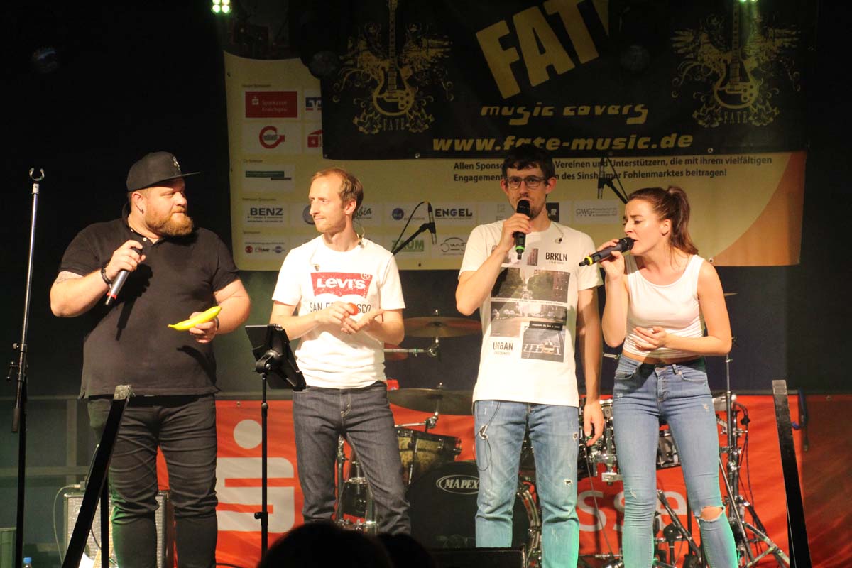 (cr) Eine klasse Samstag Abend Party und eine volle Hütte bescherte uns dieses Jahr FATE auf dem Fohlenmarkt. Band Leader Chris Epp mit einer anderen Besetzung hatte ja schon am Vorabend bei der Wiesentalparty gezeigt wie man den Saal zum kochen bringt. FATE steht mittlerweile fast 15 Jahre auf der Bühne und überzeugt auch mit neuer Sängerin. Wer solche Bands vor Ort hat, der muss für gute Partyaction nicht unbedingt Bands von weiter her engagieren. An solch einem tollen Abend hat sich natürlich auch die komplette Hallengastronomie gefreut.