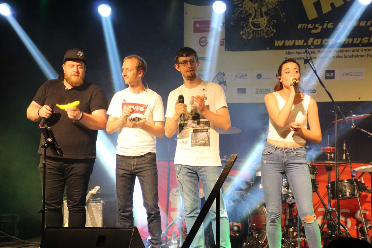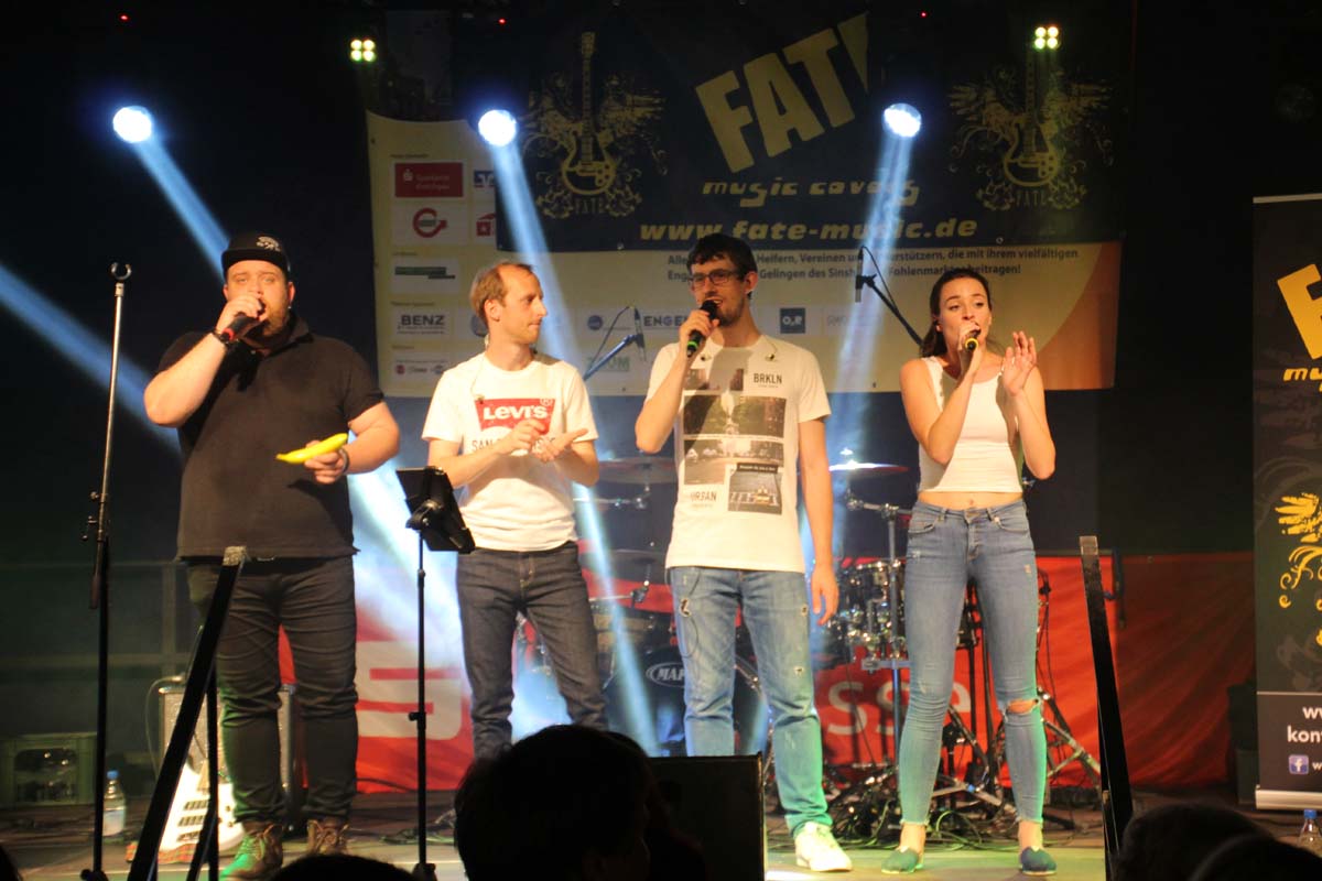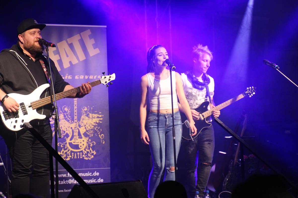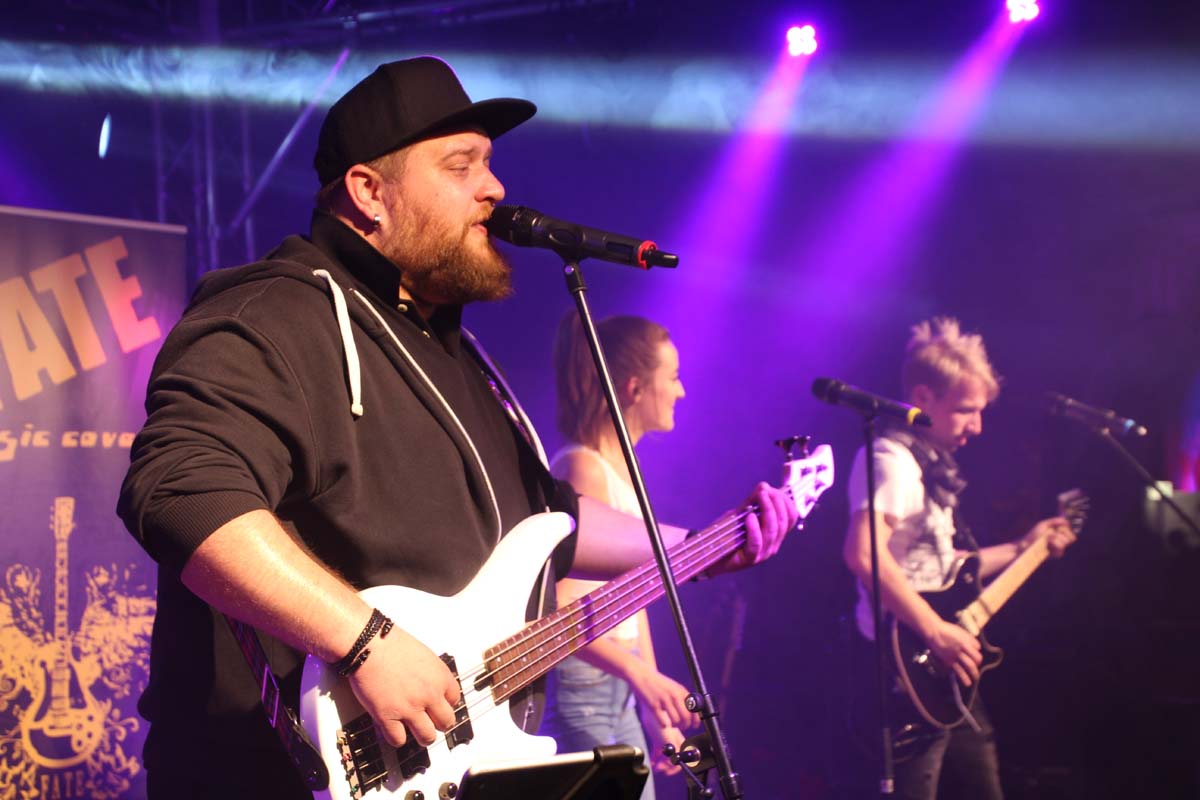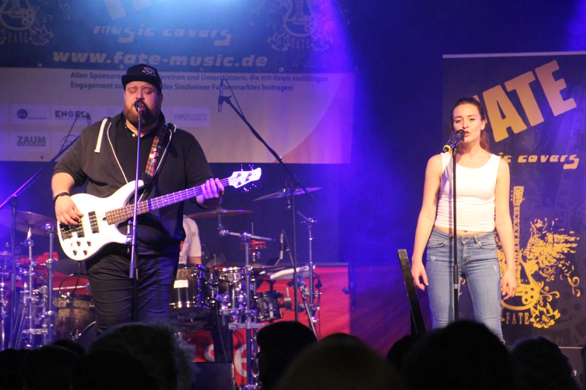 (cr) Eine klasse Samstag Abend Party und eine volle Hütte bescherte uns dieses Jahr FATE auf dem Fohlenmarkt. Band Leader Chris Epp mit einer anderen Besetzung hatte ja schon am Vorabend bei der Wiesentalparty gezeigt wie man den Saal zum kochen bringt. FATE steht mittlerweile fast 15 Jahre auf der Bühne und überzeugt auch mit neuer Sängerin. Wer solche Bands vor Ort hat, der muss für gute Partyaction nicht unbedingt Bands von weiter her engagieren. An solch einem tollen Abend hat sich natürlich auch die komplette Hallengastronomie gefreut.