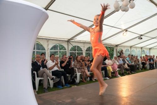 Durch das Programm führte Moderatorin Doris Steinbeißer. Für musikalische Beiträge sorgten die Band „Easy Blue“ mit dem Titel „Es lebe der Sport“ sowie der Musikverein Angelbachtal. Landrat Dallinger informierte über die Sportförderung des Kreises, die trotz finanzieller Herausforderungen in diesem Jahr 443.000 Euro beträgt. Er dankte dem Kreistag und den drei Sportkreisen für die Zusammenarbeit. Im Rahmenprogramm traten zwei Mädchen und vier Trainerinnen der Rhythmischen Sportgymnastik der TSG Wiesloch auf.