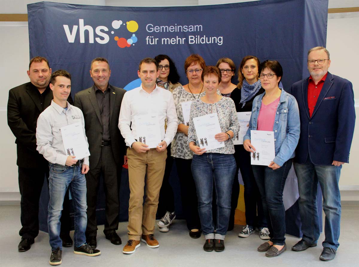 (zg) Am Freitag, dem 29.09.2017, konnte in kleinem, feierlichen Rahmen acht Kursteilnehmern der VHS Sinsheim das Prüfungszertifikat „Finanzbuchführung (3) EDV“ überreicht werden, sieben erhielten zudem das Gesamtzertifikat „Geprüfte Fachkraft Finanzbuchführung“.
