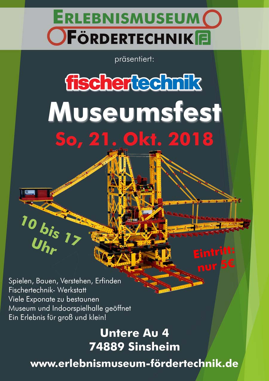 Am 21.10.2018 lädt das Erlebnismuseum Fördertechnik zum fischertechnik Museumsfest ein.