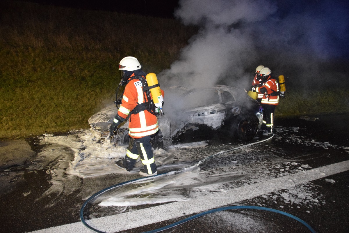 Bei Kirchardt steht ein Fahrzeug in Brand