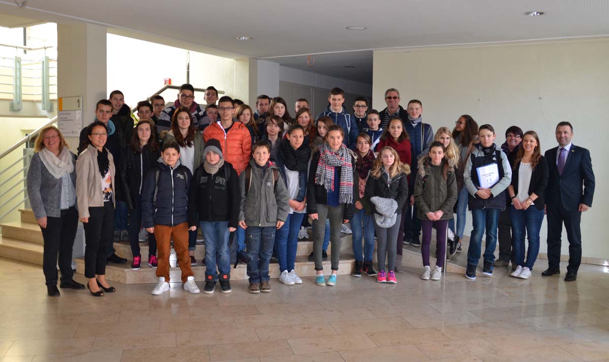(zg) Über 50 Schülerinnen und Schüler von den Schulen „François Truffaut“ und „Saint-Joseph“ aus der Partnerstadt Longué / Frankreich konnte Oberbürgermeister Jörg Albrecht im Sitzungssaal des Rathauses in Sinsheim willkommen heißen.