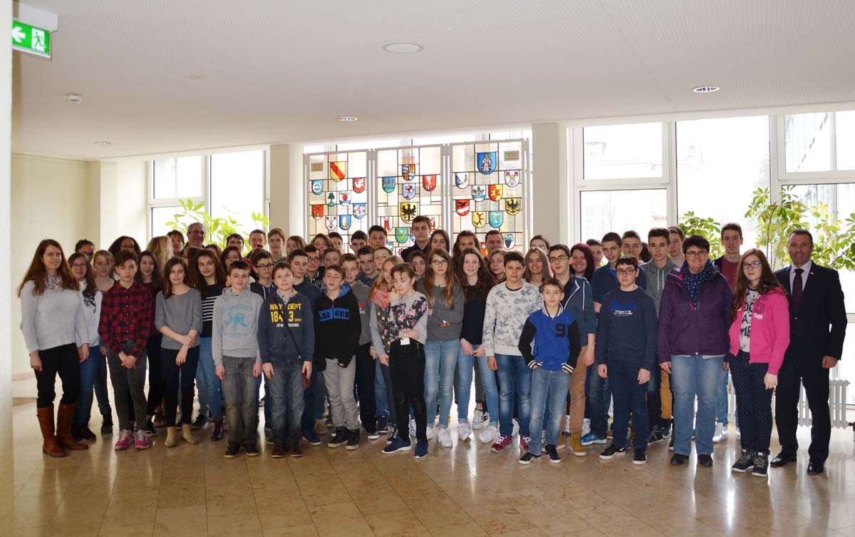 (zg) Auch dieses Jahr konnte Oberbürgermeister Jörg Albrecht über 50 Schüler der Schulen „Francois Truffaut“ und „St. Joseph“ aus der Partnerstadt Longué / Frankreich im Sitzungssaal des Rathauses begrüßen.