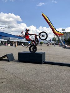 In den Drehpausen begeisterte der Profi die Museumsbesucher mit spontanen Stunteinlagen und fand für das ein oder andere Selfie mit seinen Fans immer Zeit. Auf die Frage, wie die Drehtage liefen, kam der Trialbiker aus dem Staunen nicht raus: „Es war auf jeden Fall super spannend. Ich bin schon immer technikaffin gewesen. Und dann wirklich hier in der Szenerie fahren zu können, ist für mich wie ein Kindheitstraum. Es macht mir einfach Mega-Spaß.“ Zum Abschluss trat er Freestyle-Profi dem Museumsverein als Ehrenmitglied bei.