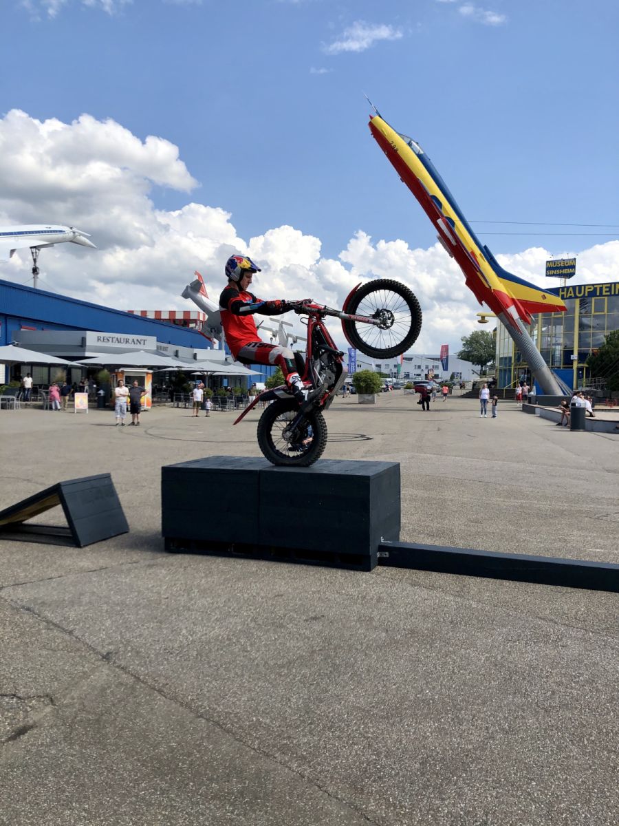 (zg) Sinsheim. Seit März liegen die meisten Events auf Eis – so auch im Bereich Motorsport. Kein Grund für den Freestyle Trial-Profi Adrian Guggemos den Kopf hängen zu lassen. Im Gegenteil: Mit einer Filmcrew machte er sich Ende Juni auf in die Technik Museen Sinsheim Speyer, um sein neuestes Videoprojekt „Ride at the Museum“ umzusetzen. Der Überschallflieger des Museums, die Tupolev Tu-144, glänzt dabei als Hauptdarstellerin. Den ganzen Clip gibt es ab sofort auf dem YouTube-Kanal „Red Bull Motorsports“: https://www.youtube.com/watch?v=5EYoIkop3Lk